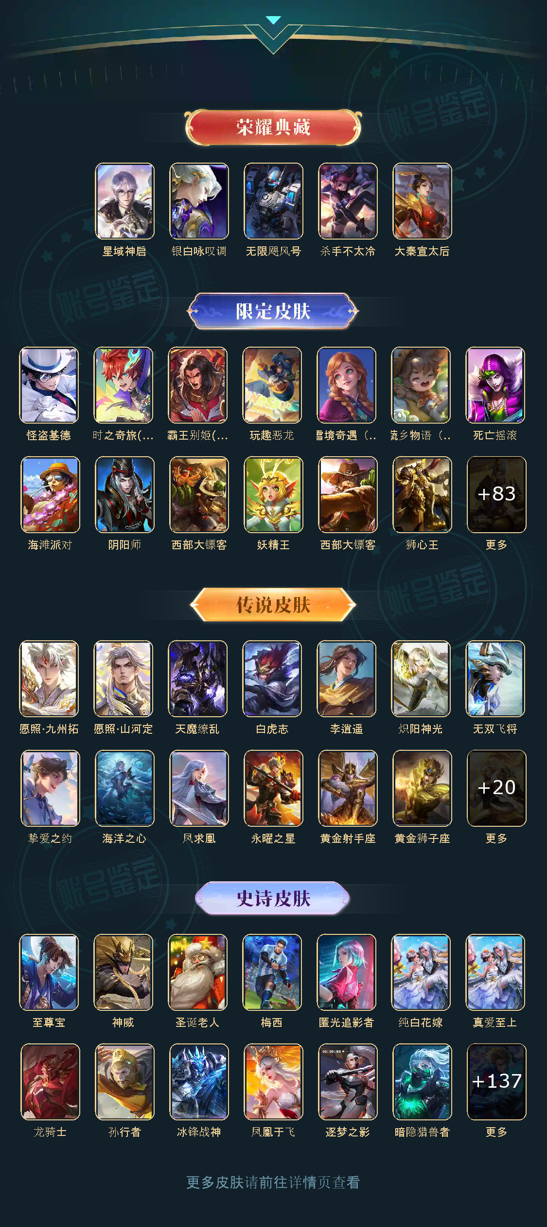 V10 英雄数量124,典藏皮肤数4,皮肤数量461,杀手不太冷/大秦宣太后/无限飓风号/星域神启/武圣