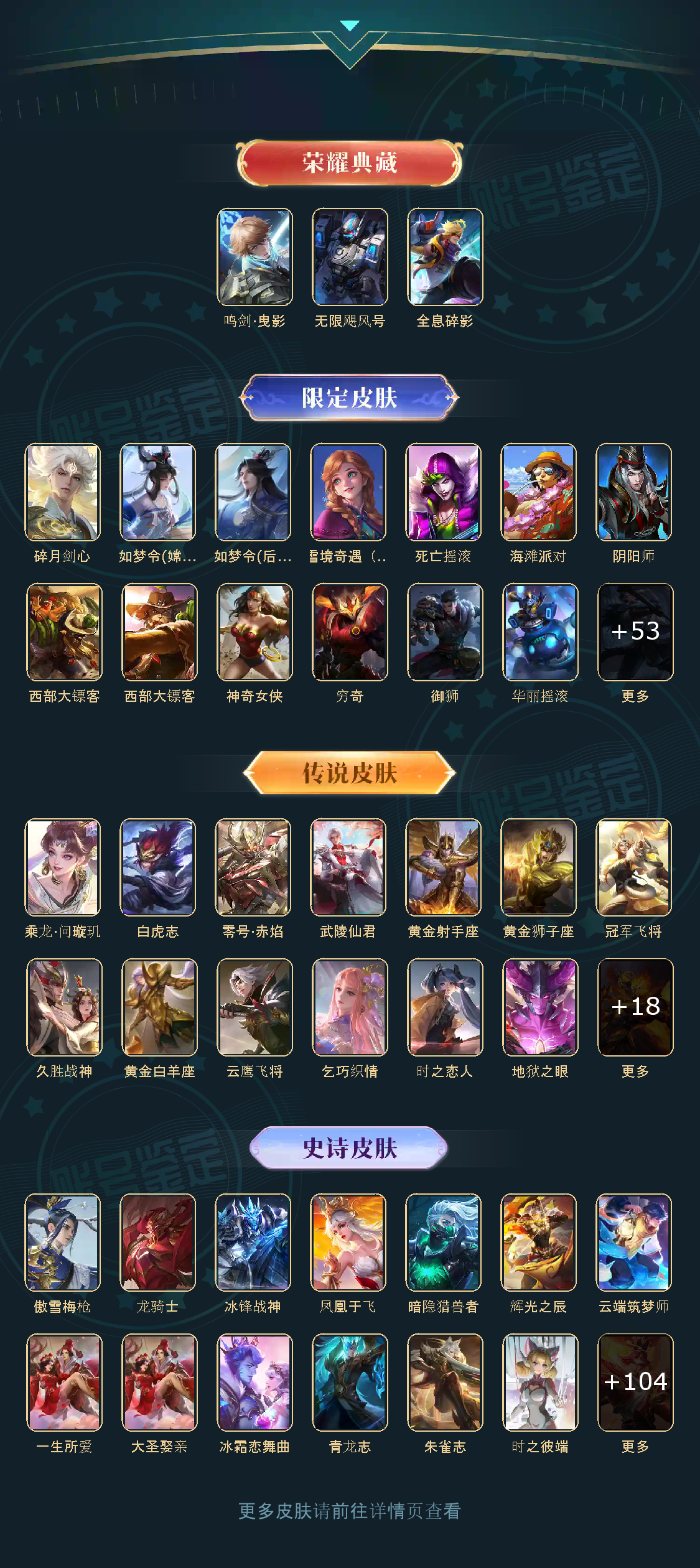贵族等级V10,英雄数量123,典藏皮肤数3,皮肤数量389,至尊宝/无限飓风号/鸣剑·曳影