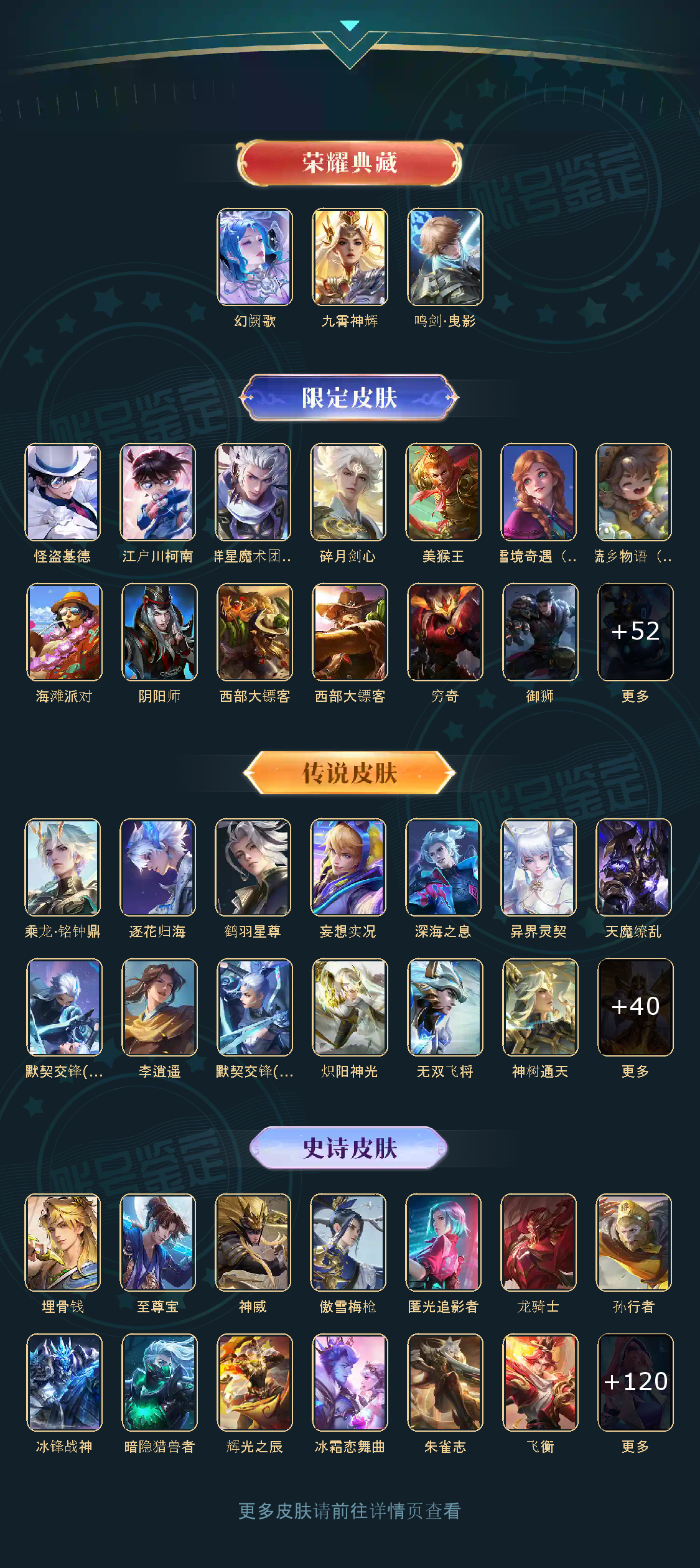 贵族等级V10,英雄数量124,典藏皮肤数3,皮肤数量431,鸣剑·曳影