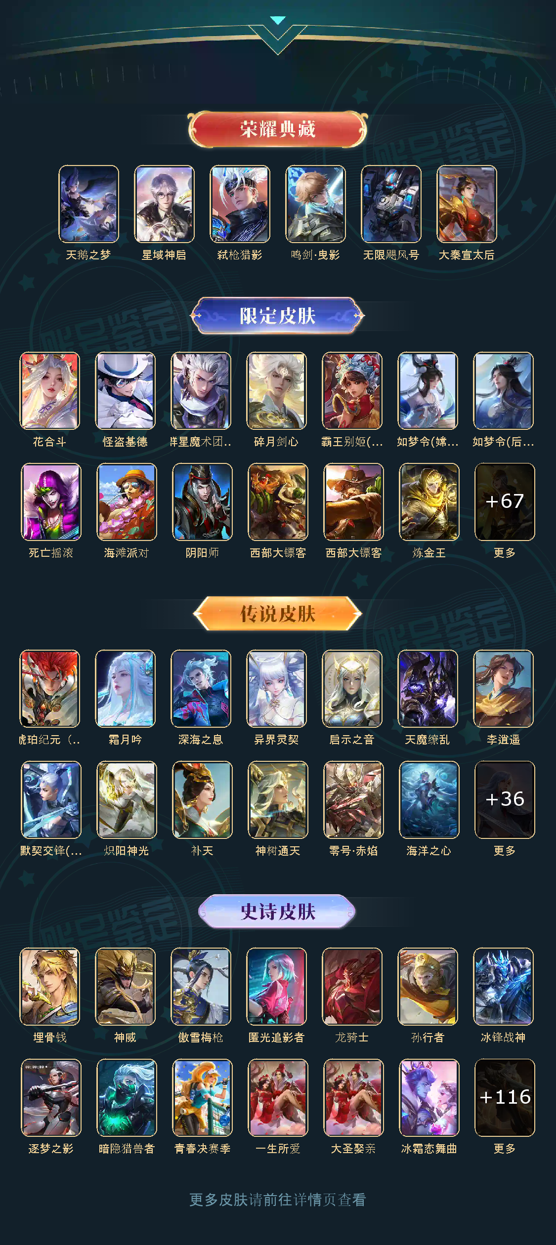 贵族等级V10,英雄数量124,典藏皮肤数6,皮肤数量439,天鹅之梦/大秦宣太后/无限飓风号/鸣剑·曳影/星域神启
