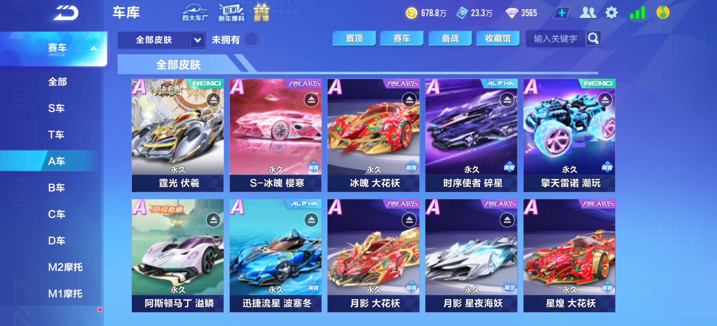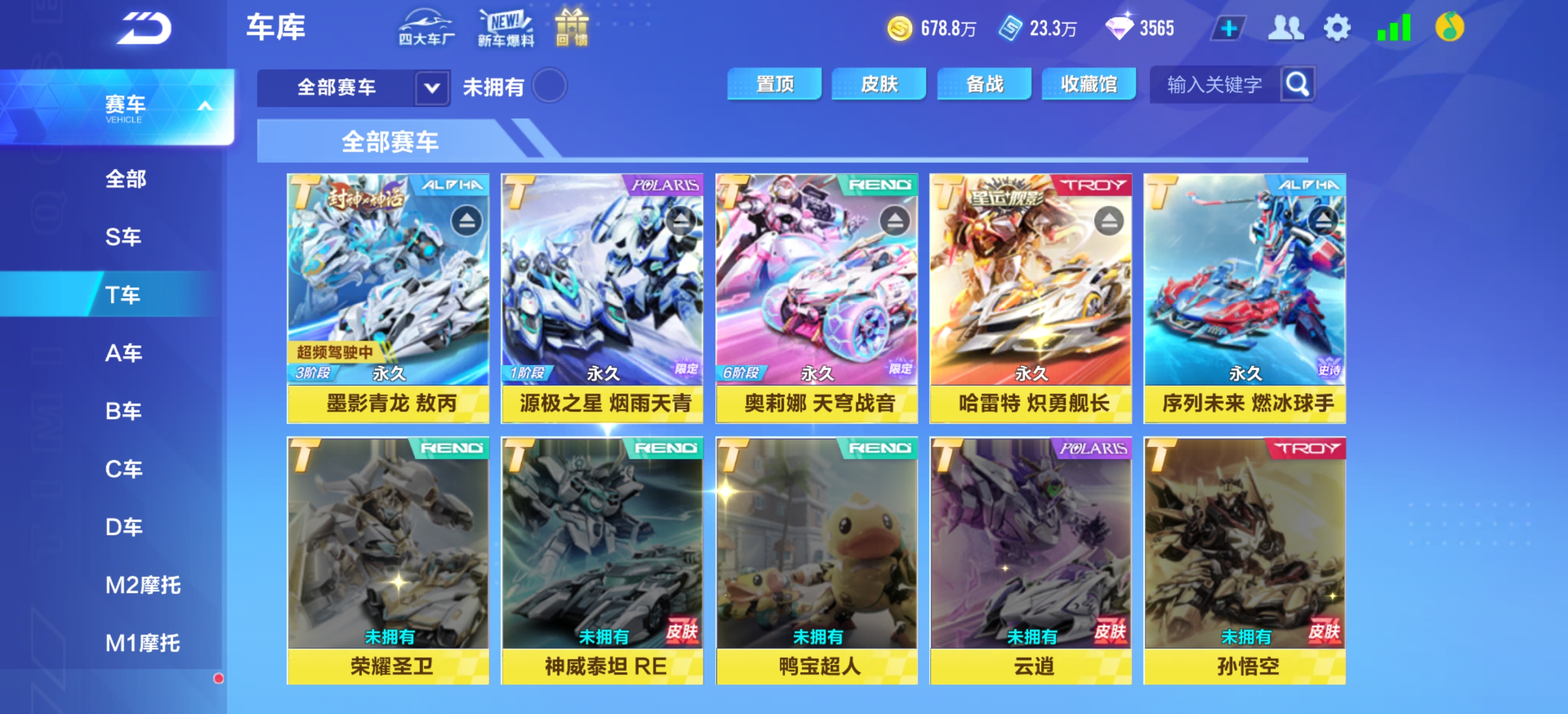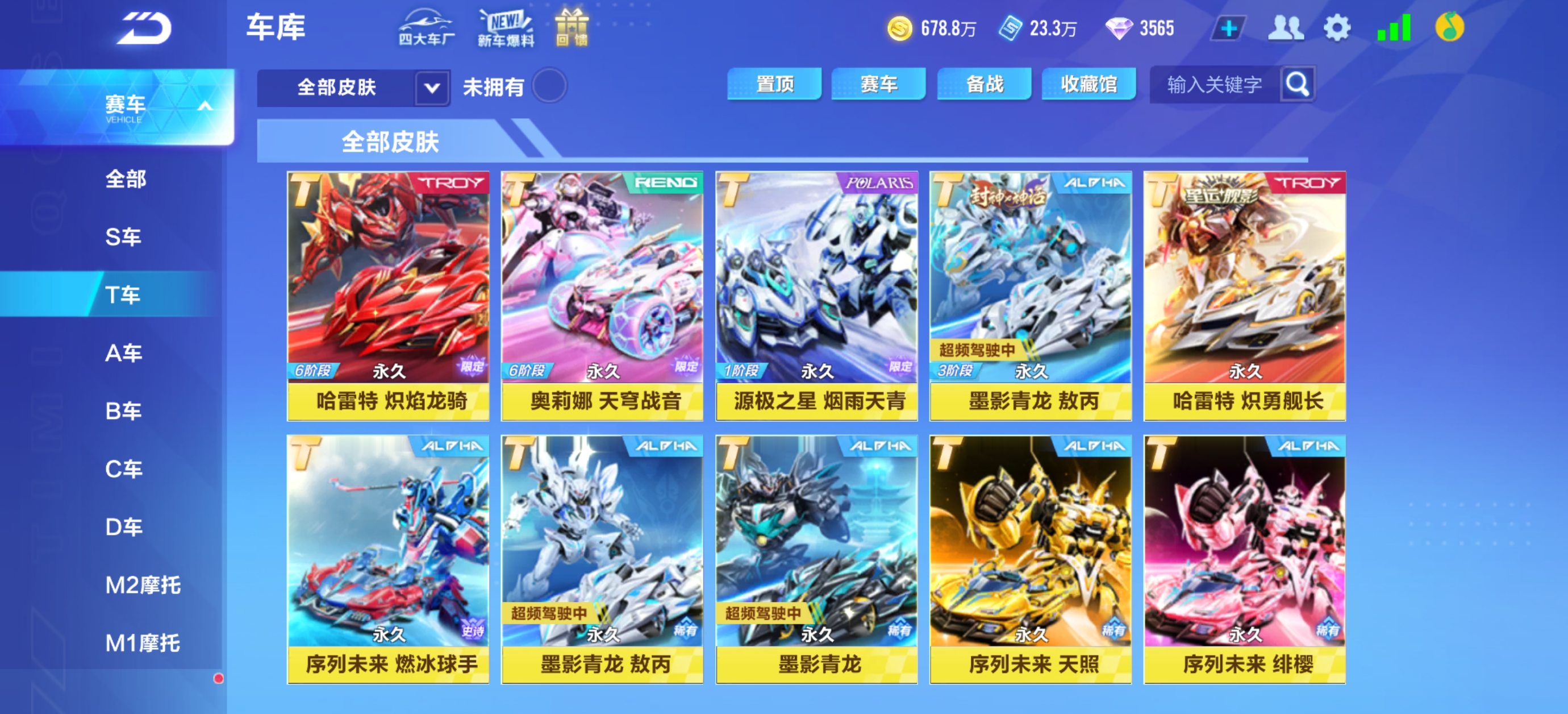 (不租号违规登号的死q家)v13,5t车,哈雷特/青龙/源极之星/奥丽娜/序列未来,联赛车幻星/月影/霆光,火龙,神龙,灵蛇皮肤众多看图。