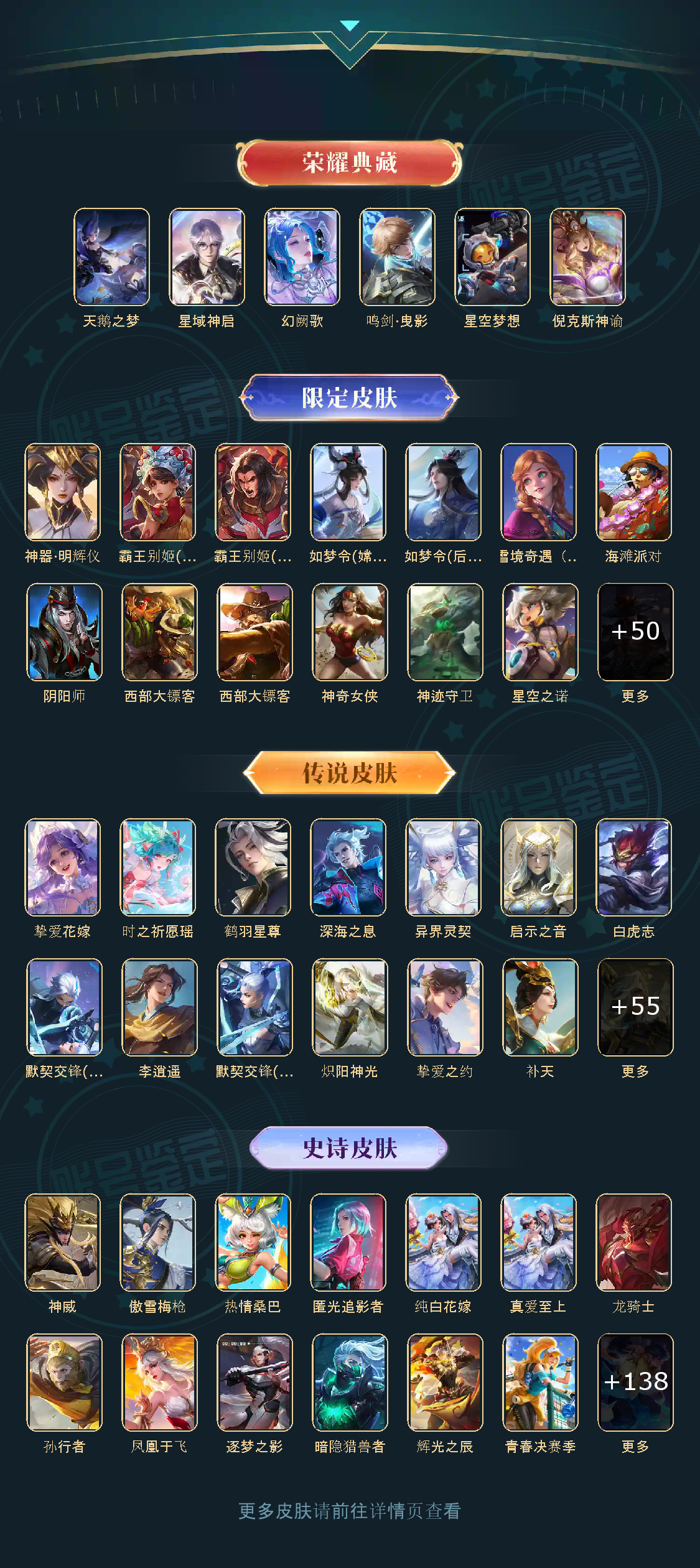 贵族等级V10,英雄数量123,典藏皮肤数6,皮肤数量449,