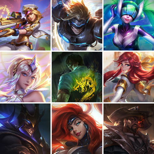 【传说皮肤】青花瓷伊泽瑞尔 灵魂莲华瑟提 神王德莱厄斯 驯龙学者黑默丁格 日蚀骑士蕾欧娜 天煞劫 月蚀骑士蕾欧娜 西部魔影卢锡安 暗星尊烬 源计划林易 邪鸦魅影乐芙兰 源计划联合艾希 星之守护者阿狸 银河魔装机神兰博 黎明使者锐雯 枯萎之壤泽拉斯 女校长菲奥娜 钢铁军团盖伦 灌篮高手德莱厄斯 屠龙勇士潘森 炼狱魔犬内瑟斯 苹果机器人布里茨 最终BOSS维迦 苍穹之光韦鲁斯 腥红之月鬼武姬阿卡丽 源计划净化薇恩 女皇艾希 星之守护者拉克丝 泳池派对吉格斯 驯龙炮手崔丝塔娜 女主播迦娜 金牌主播德莱文 丧尸布兰德 蔷薇绅士杰斯 焰尾妖狐阿狸 霸天零式赛恩 烈焰雄心崔丝塔娜 死亡骑士盖伦 战地巨兽科加斯 黯黑魔龙希瓦娜 血石领主弗拉基米尔 地狱行者孙悟空 冰川巨兽墨菲特 陆地王者4WD布里茨 未来战士凯特琳 红色男爵库奇 暗星锤石 冰霜之刃艾瑞莉娅 魔幻卡牌崔斯特 双重冰晶艾尼维亚 律政大亨蒙多 电玩女神娑娜 地狱之门卫士加里奥 鬼魂新娘莫甘娜 恶魔之刃泰达米尔 星之守护者金克丝 欧米伽小队幽灵特工 黑夜使者亚索 恶魔男爵瑞兹 奥德赛凯隐 霸天异形卡兹克 宇航员诺提勒斯 偶像歌手阿狸 符文战熊沃利贝尔 大天使长米迦勒凯尔 神拳李青 第三类接触黑默丁格 战地机甲厄加特 上古战魂魔腾 女警狙击凯特琳 黯晶凤凰艾尼维亚 约德尔国队长提莫 合金巨兽努努和威朗普 铁哥们儿奥拉夫 提莫约德尔人的一大步 冰霜亚龙希瓦娜 钢铁之翼凯尔 战场女武神凯尔 绅士科加斯