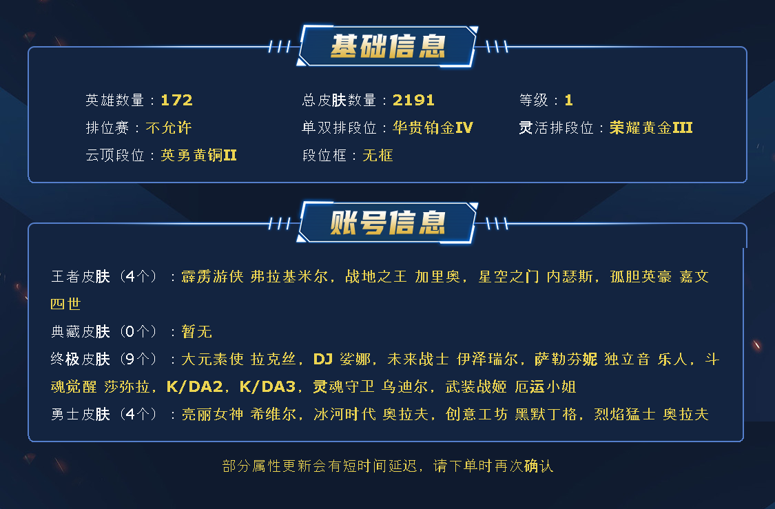 出现异常多登录几次即可!!!电一艾欧尼亚丨1200原皮丨联盟不朽签名版卡莎阿狸丨圣天龙李青丨炽天使永恩丨冰原酒桶丨多传说多限定!!!云顶多小小英雄多棋盘!!喜欢记得收藏!租之前建议查一下段位是不是你要的,确保是你需要的再租哦。 请勿挂机送人头!!!很重要!!!发现挂机送人头锁单永久拉黑!!