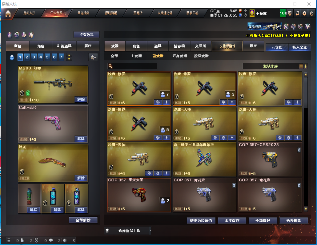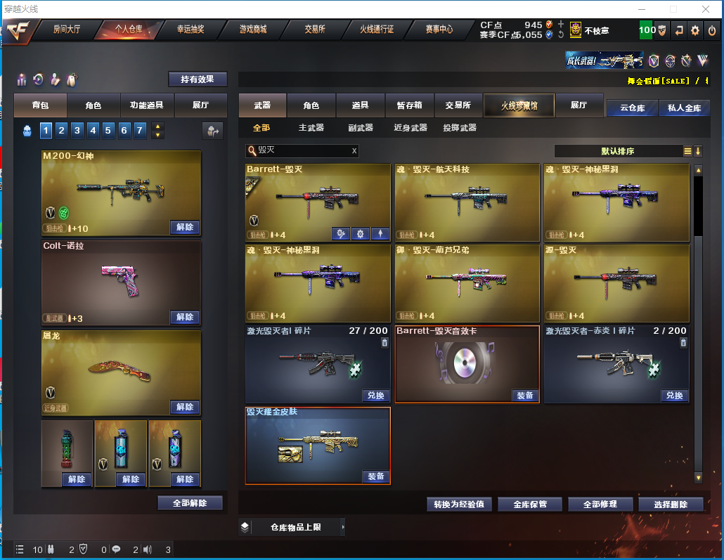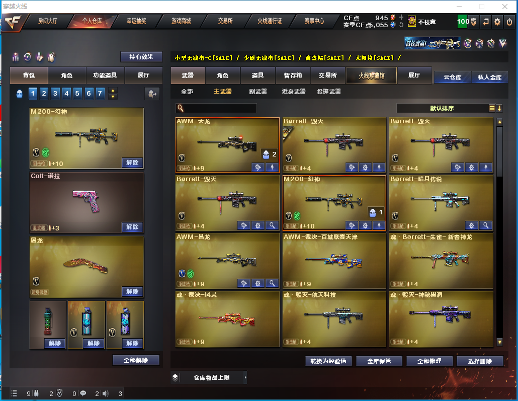 南部:幻神/云悠悠/雷神星空/HK417朱雀/毁灭耀金+音效卡/6修罗/王者之魄/源QBZ蔷薇/爆破全装