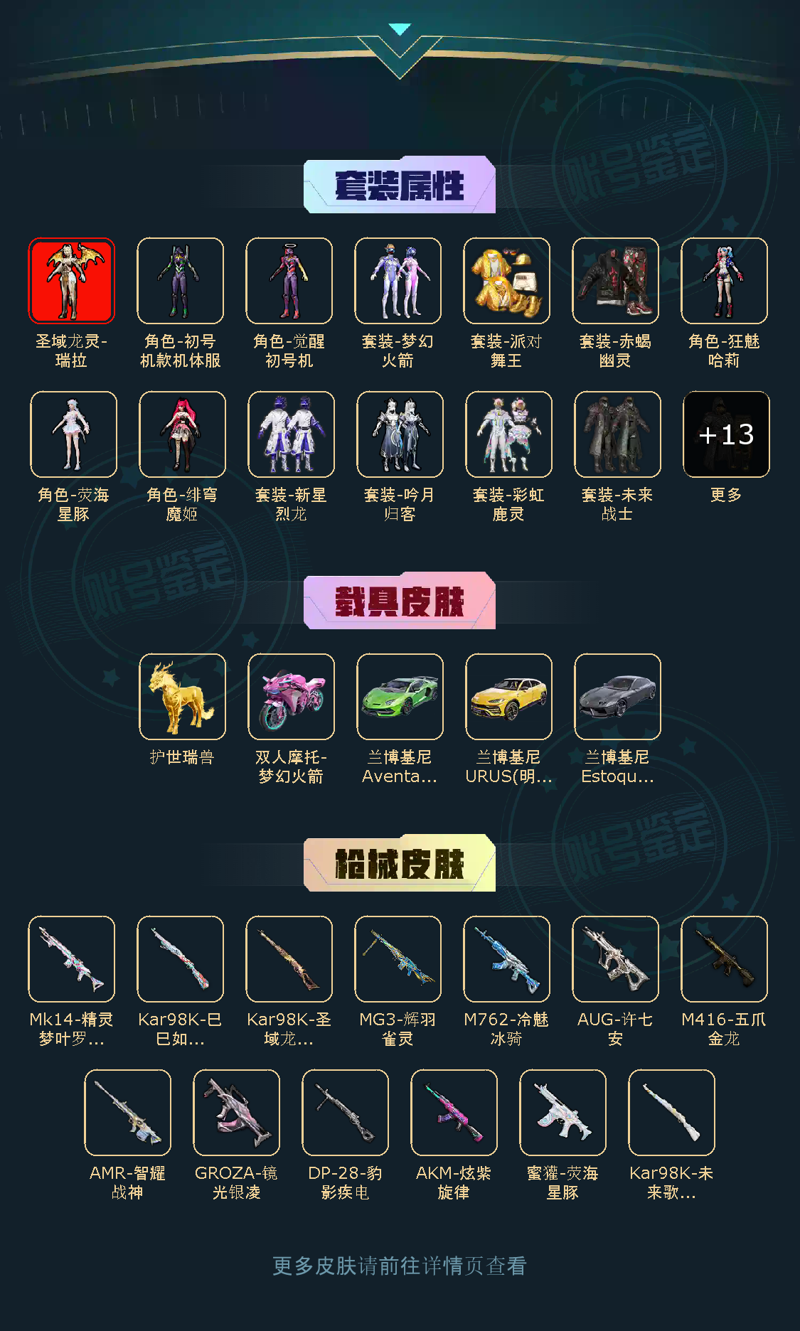 【粉色枪皮】M416-五爪金龙/AKM-炫紫旋律/GROZA-镜光银凌/AUG-许七安/M762-冷魅冰骑/蜜獾-荧海星豚/Kar98K-圣域龙灵/Kar98K-未来歌姬/Kar98K-巳巳如意/AMR-智耀战神/Mk14-精灵梦叶罗丽/MG3-辉羽雀灵