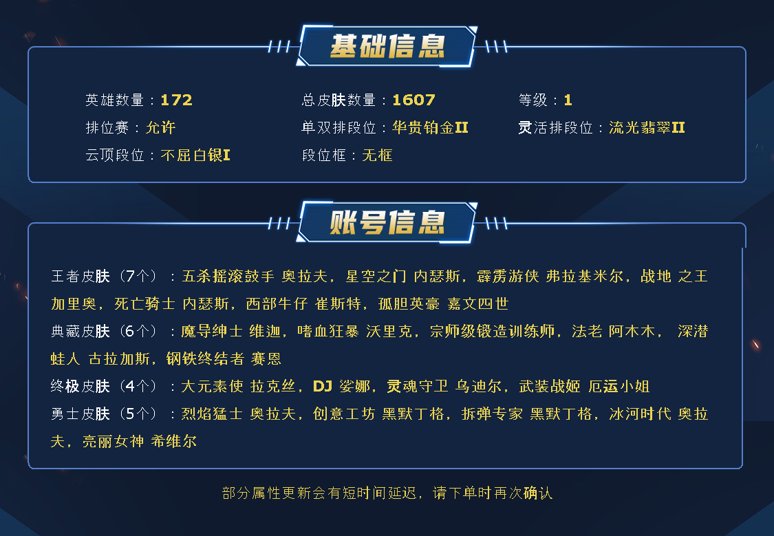 1600皮肤〓圣堂铁男莫甘娜〓摄魂龙瞎〓斩星冰桶〓玉剑男女刀〓海之歌套〓沄顶5神话〓群星依旧棋盘