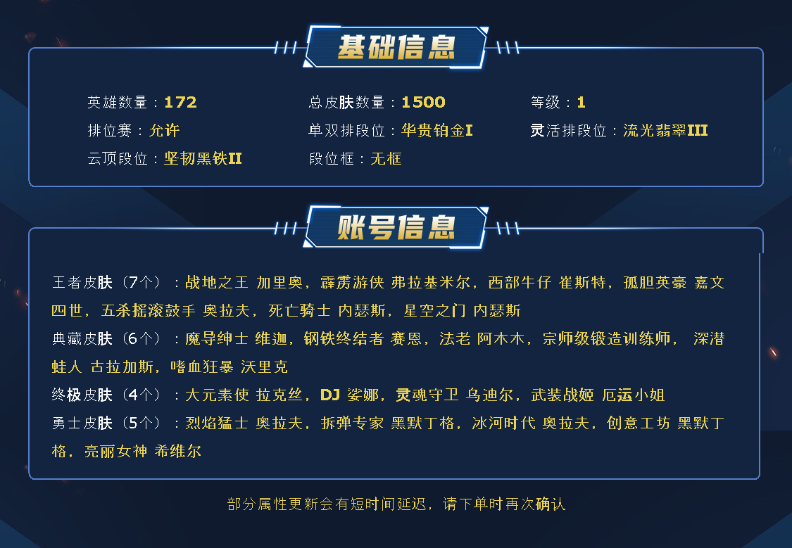 ~~喜欢记得收藏~~可排位~~1335皮全英雄丨936原皮399炫彩~~租之前尽量查一下游戏ID,确保段位是您需要的,避免浪费您的时间~~请勿挂机逃跑故意送人头,谢谢合作,谢谢~~