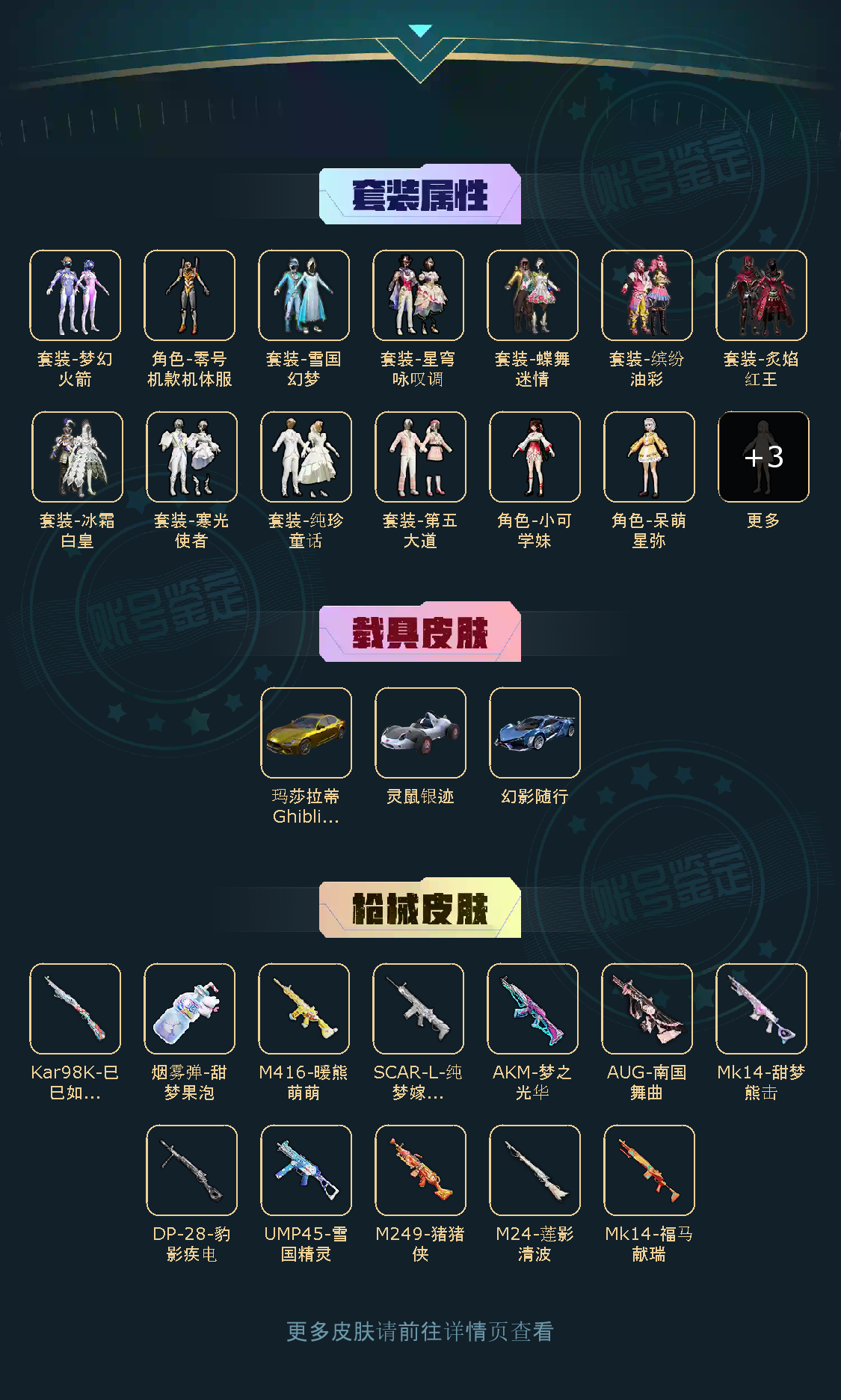 【粉色枪皮】AKM-梦之光华/SCAR-L-纯梦嫁纱/M416-暖熊萌萌/AUG-南国舞曲/Kar98K-巳巳如意/M24-莲影清波/Mk14-甜梦熊击/UMP45-雪国精灵/M249-猪猪侠/烟雾弹-甜梦果泡