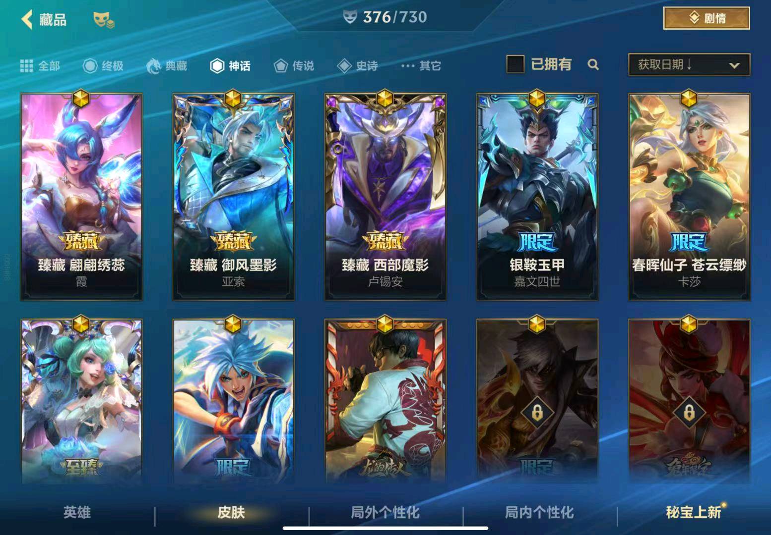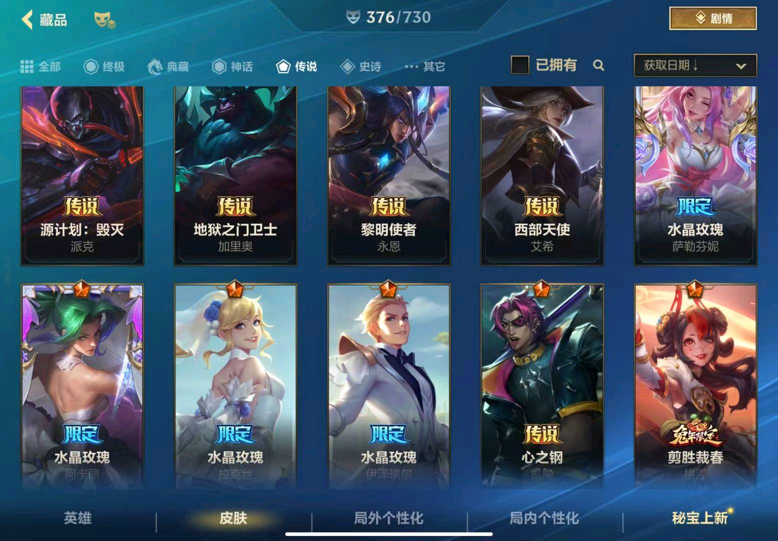 【苹果】 【允许排位】376皮🔥8神话41传说🔥臻藏亚索🔥珍藏卢锡安🔥水晶全套🔥兰亭序全