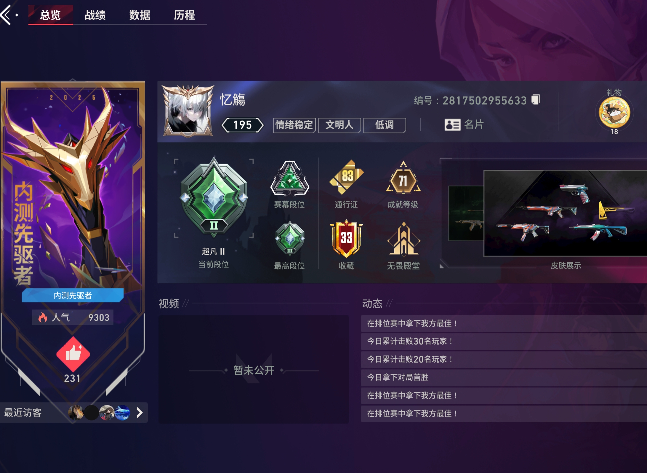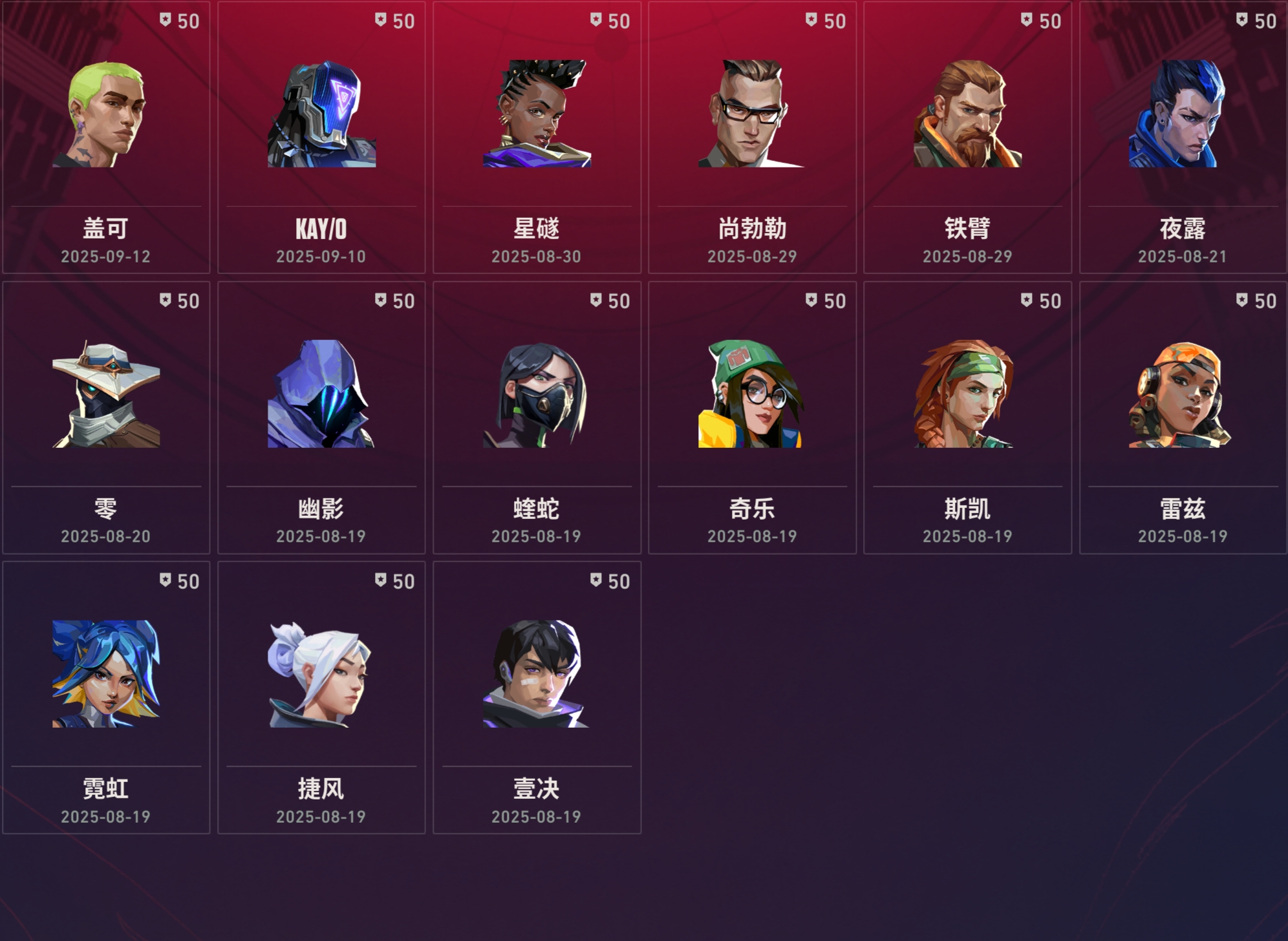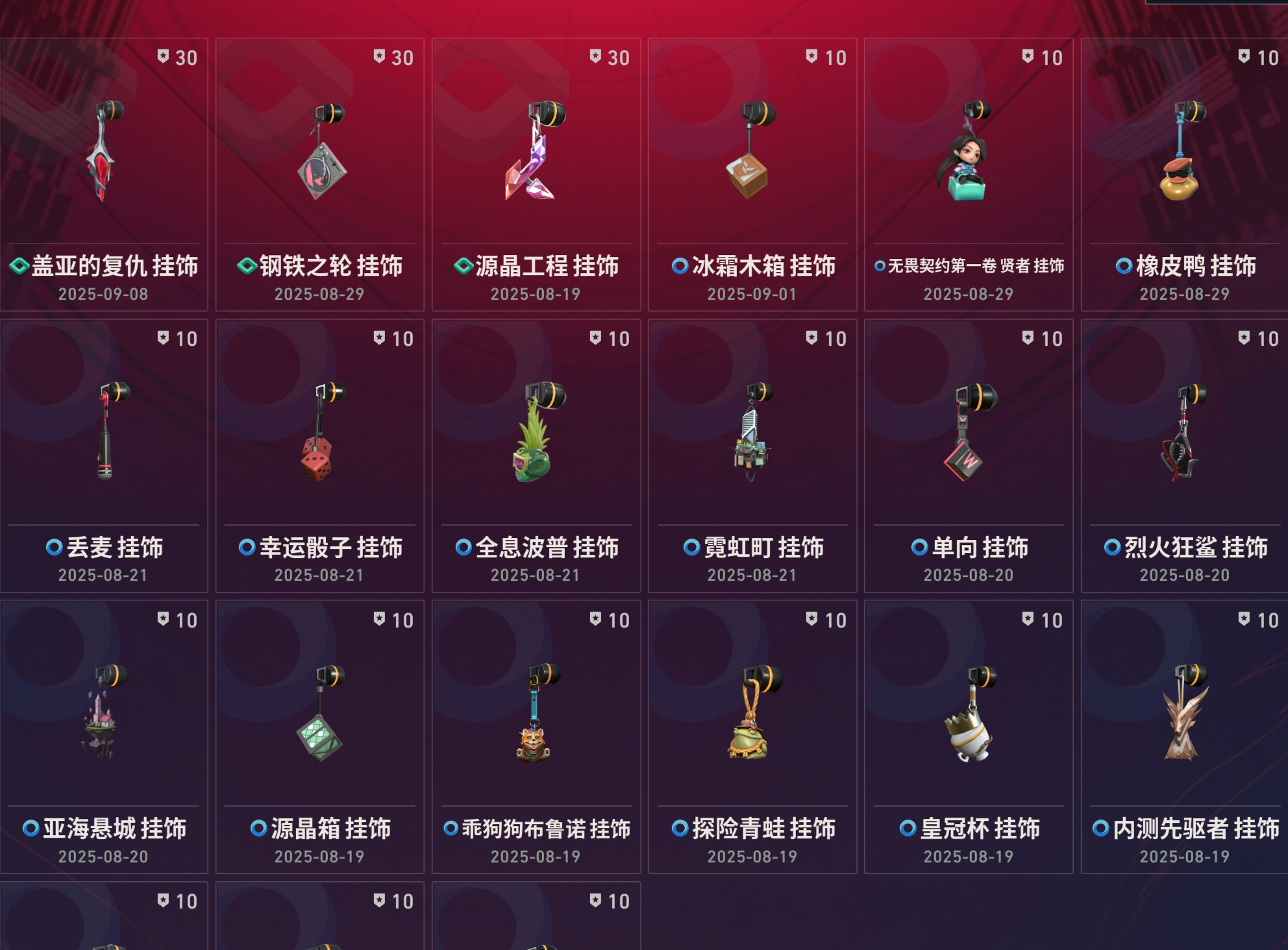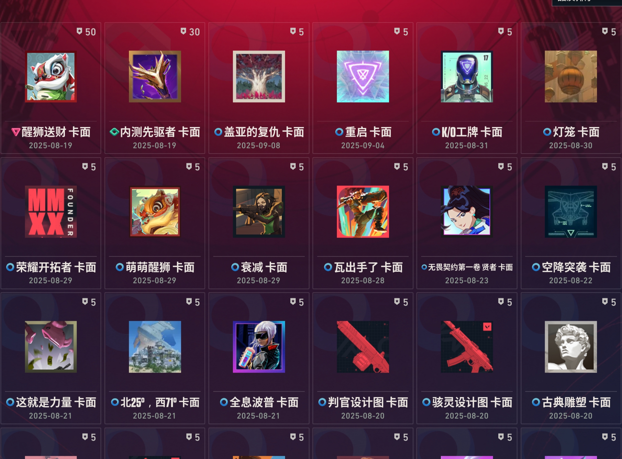 近战武器:vct2025爪刀满级全炫彩(vct爪刀)/紫金爪刀2级/澄湖涟滟2级鱼扇/沧澜戟2级深蓝/偃月2级/起源环刃2级/无畏契约第1卷苦无2级/辐爆之杖2级/推进模式前进四2级银蓝/堕天遗武仪式匕首2级/个人近战单位满级粉白/离子武器能量剑2级/盖亚之怒2级蓝色/全息匕首2级/醒神破2级全炫彩/天玄刀2级/侦察力量蝴蝶刀2级全炫彩(侦察蝴蝶刀)/金琅斧2级/再见安打/巨神铁甲短剑/神罚军刀(神中神)