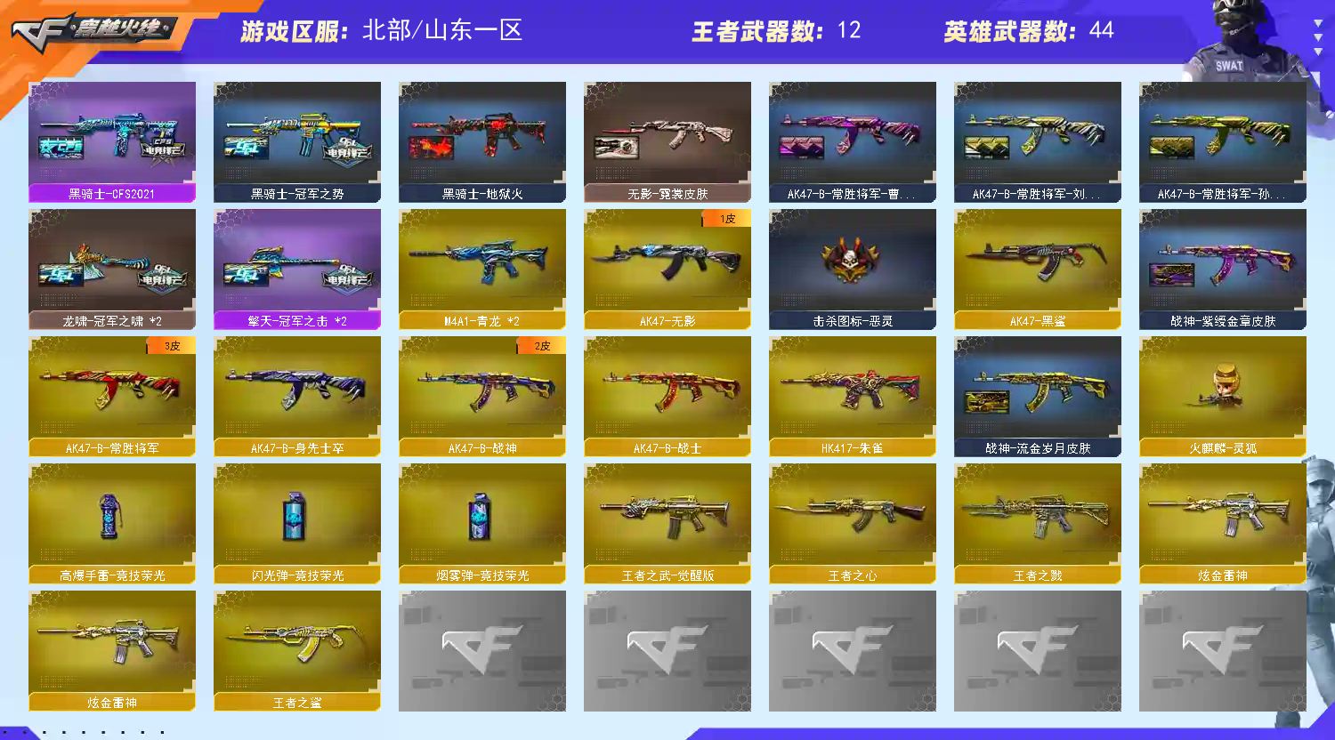 北部山东一区【幻神冠军之幻➕幻神音效卡➕➕➕➕】王者葵零小乔瞳青龙朱雀火麒麟毁灭2018冠军之魄势虎将ぃ全音效卡本游戏账号:英雄武器41个; 王者武器10个。 装备不多,但是主武器、副武器、近身武器够用 拥有完美游戏体验。重要的是,特殊装备有:麒麟刺、加特林-炼狱、HK417-朱雀、AK47-火麒麟、M200-幻神、烟雾弹-竞技荣光、闪光弹-竞技荣光、王者之武-觉醒版、王者之戮、王者之灵、炫金雷神、王者之心、王者之鲨、火麒麟-灵狐、魅影、王者玲珑-小乔、王者-瞳-闭月羞花、王者-葵-貂蝉、生化弹匣、M200-幻神音效卡、M4A1-黑骑士音效卡、等,随意畅选。