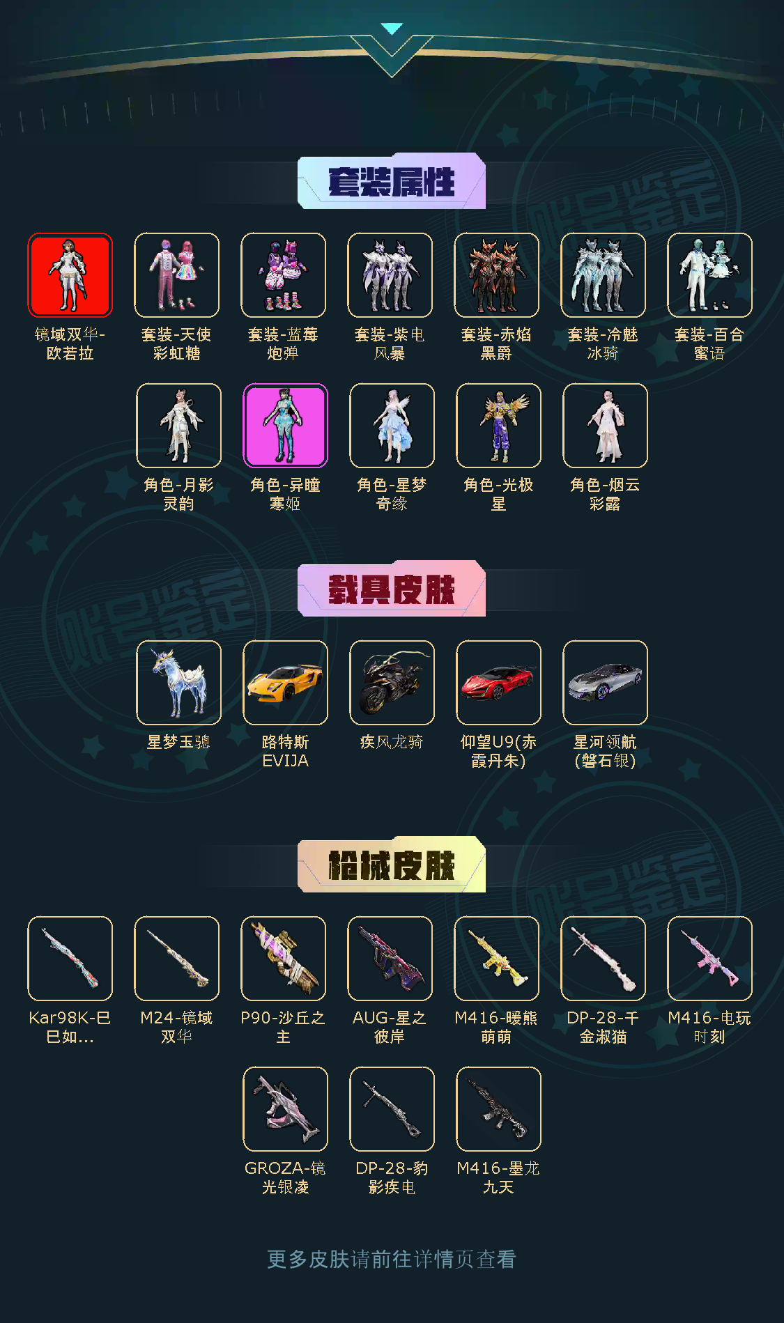 【稀有资产】镜域双华-欧若拉[3级]/套装-胖达圆圆/套装-暗夜魅影/套装-粉红小猪/套装-浪漫波比/套装-兔兔白日梦/角色-都市丽猫/角色-摩登魅猫/角色-临安公主/套装-狂沙舞者/角色-白光莹