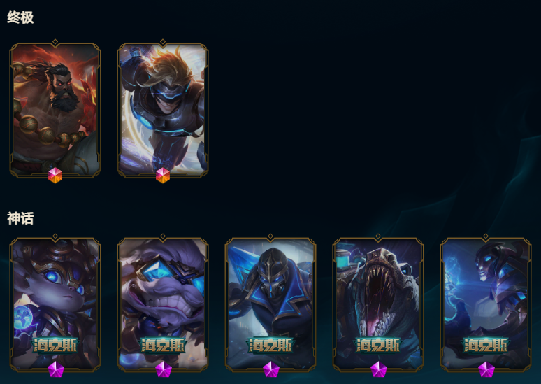 【德玛西亚460原皮11至臻6海克斯】至臻辛德拉丶至臻皎月丶至臻小鱼人丶至臻莫甘娜丶至臻狗熊