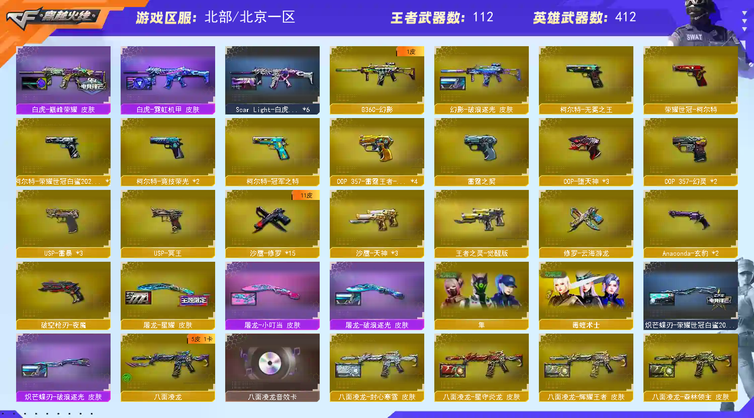 3×USP雷暴+USP冥王+⑩×COP+3×白鲨柯尔特+冠军之特+柯尔特无冕之王