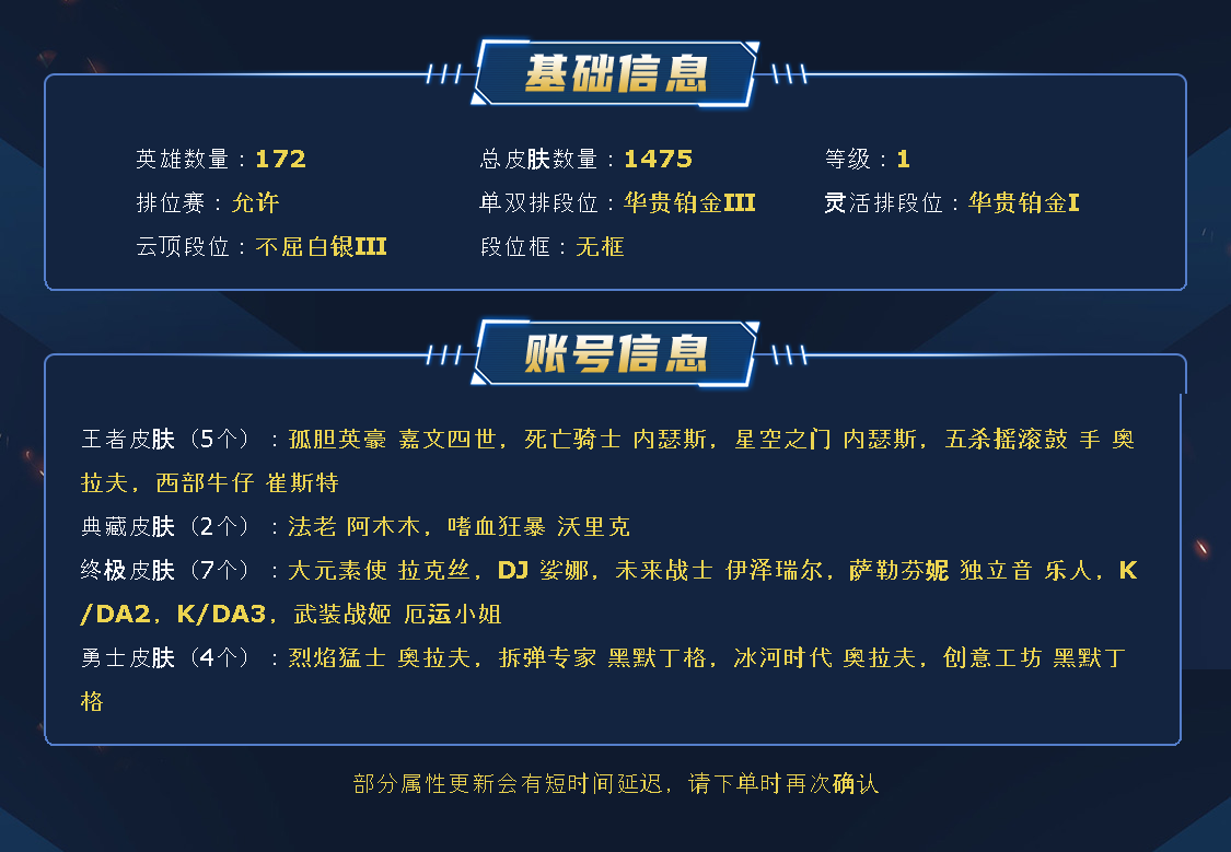 ~~喜欢记得收藏~~可排位~~1500皮全英雄~~租之前尽量查一下游戏ID,确保段位是您需要的,避免浪费您的时间~~请勿挂机逃跑故意送人头,谢谢合作,谢谢~~