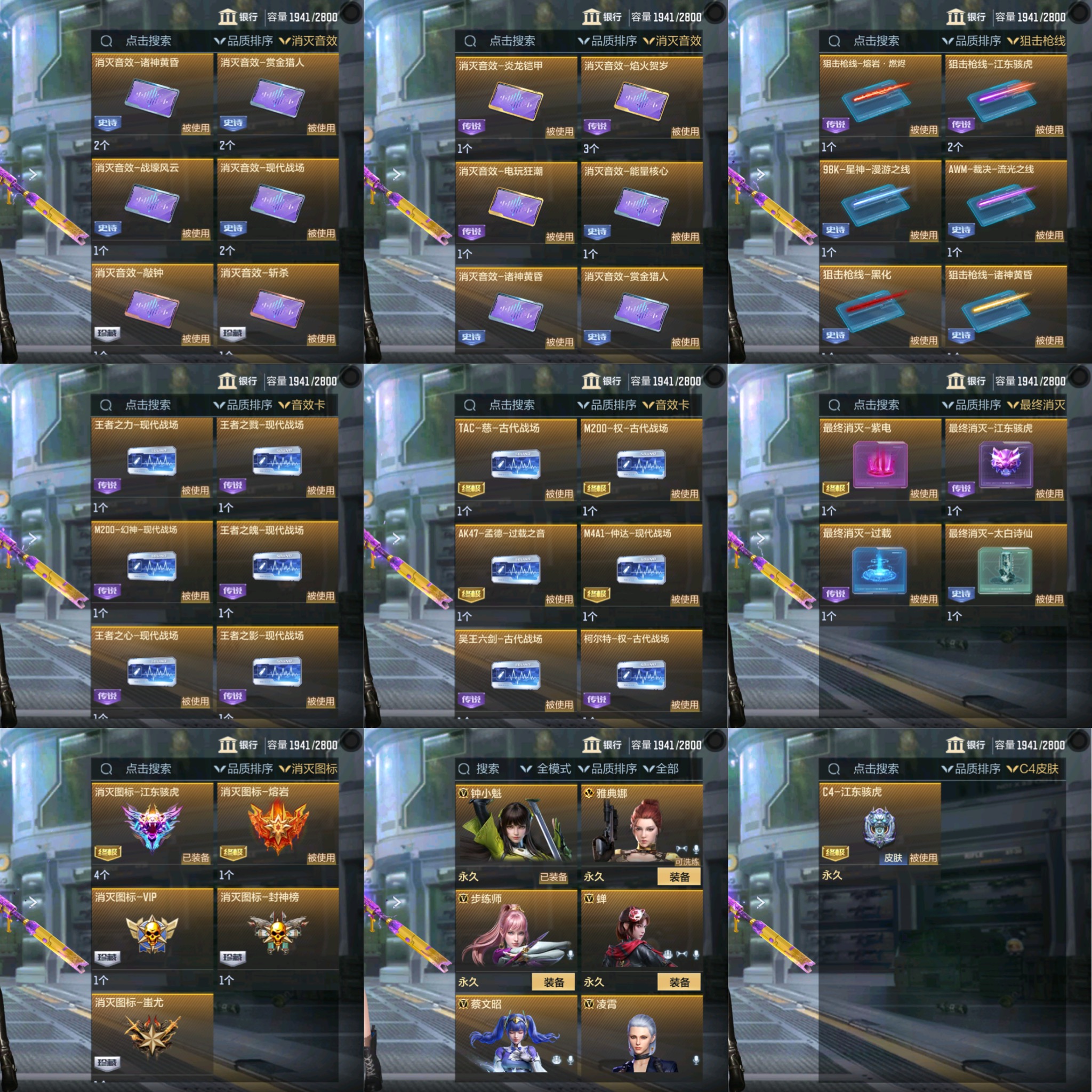 【套装】 M12S雷霆王者至尊, AK47雷霆王者至尊, M4A1雷霆王者至尊, 巴雷特雷霆王者至尊, 蝶至尊, 兽至尊, 翎至尊, 腾至尊, 狱至尊, 幻至尊, 魄至尊, 心至尊 【武器】 王者之蝶, AK47雷霆王者, M12S雷霆王者, M4A1雷霆王者, 王者之翎, 王者之魄, 王者之影, 王者之心*3, 王者之兽, 王者之腾, 巴雷特雷霆王者, 王者幻神, 王者之神, 王者之狱, 王者之迹, 王者之魂*3, 王者之隐*2, 雷霆王者之锋, 王者之痕, 王者之仞*2, 王者之锋*4, AN94盖, CZS2仲康, KSG孟获, AK47奉先, AK47孟德, M4A1仲达, M4A1星象, M4A1游骑兵, M200幻神, VEPR12本初, P90双脊龙, 81式光明之神, MK47云舞, COP357堕天神*6, COP357旗袍, COP357雷霆, COP357雷霆王者, MK23双脊龙, MK23幻神, MK23机械纪元*2, 炽芒蝶刃*2, 09式狙天神*4, 98K星神, 98K蜻蜓, 98K血月, 98K黑骑士, 9A91天神, 9A91魔蜥觉醒*3, AA12火药, AA12火药觉醒, AA12雷神, AK12天启, AK47塔罗牌觉醒, AK47幸运日, AK47春雅觉醒, AK47木兰, AK47机械迷城, AK47樱斗士一觉, AK47沙漠郡主二觉, AK47火麒麟*2,火皮王幻火皮,王幻紫电王幻,王者幻神紫电王者幻神,王幻紫电熔岩王幻,王者幻神紫电熔岩王者幻神,紫电幻,紫电力紫电,王者之力紫电王者之力,王力紫电王力, AK47猩红传说, AK47破空冰刃, AK47血武士*2, AK47谜城烟火, AK47雅韵青花*2, AK47雷暴, AK47雷麒麟, AK47风神翼龙*2, AK47黑鲨, AN94四凶觉醒, AN94超新星, AUG机械纪元, AWM大湾溢彩, AWM天使*2, AWM天龙, AWM指南针, AWM指南针觉醒, AWM赛博时代, CBJMS毒蜂, CZ75穷奇*2, CZ75策, CZ75龙映钟山觉醒, CZS2心动次元*7, CZS2心动次元觉醒*2, CZS2血月, DDM4PDW星际宇航觉醒, G3A3五色琉璃觉醒, G3A3衍神兵, GLOCK18猎神, GM6战争风云觉醒, HK416极光, HK417炎龙铠甲, KSG极光, KSG火力竞放觉醒, KSG黑骑士, M1216血月, M1216霸王龙, M14EBR天神, M14EBR拂影*2, M14EBR暗夜觉醒, M14EBR玄武, M16恶魔, M1887幽冥玄喵觉醒, M200心动次元*6, M4A1冰锋觉醒, M4A1千变, M4A1卧龙, M4A1堕天神, M4A1夏清觉醒, M4A1太白诗仙*2, M4A1死神*3, M4A1海骑士, M4A1猎神, M4A1玫瑰精灵, M4A1竞界荣光, M4A1赛博雷神, M4A1运输船, M4A1铁胆虎魄, M4A1雷神*2, M4A1黑骑士, M4A1黑龙, M4A1龙血, MAC10孟获, MAC10风神翼龙, MK47鼓龙*2, MK5极光*4, MK5魔鲲, MR1幽暗骑士, Origin12机变奇蛇觉醒, P90突突兔觉醒, PP19野牛造纸术觉醒, QBB95再战涿鹿, QBB95极光, QBB95螳螂*2, QBZ03死神, QBZ03湮灭, QBZ03玉面羞花, QBZ03金色蔷薇*4, QBZ19天使, QBZ191封神榜, QBZ191金甲虎啸觉醒, QBZ95天使, QCW05变形金刚·大黄蜂*2, QSZ92冰魂觉醒, QSZ92华夏传说, RPK盘龙*2, SCAR印刷术, SCAR幽暗骑士*3, SCAR幽暗骑士觉醒, SCAR心动PICK, SCAR探星者, SCARLight白虎, TAC晴舞, USP仁德, USP太白诗仙, USP机械迷城*3, USP神罚*5, USP耀金伯爵, USP雷暴, VSK94九黎兵主觉醒, 丛林匕首庆龙觉醒, 丛林匕首火力竞放*2, 刑天战斧, 刘易斯天使*2, 刘易斯血月, 剑齿虎, 剑齿虎炫彩, 加特林堡垒*3, 加特林堡垒觉醒, 加特林蟒蛇, 匕首冰魂觉醒, 匕首浩瀚征途, 双持GLOCK18本初, 双持柯尔特极光, 双持沙鹰元让, 双管猎枪未来战士, 双脊龙趾, 唐刀大唐荣耀*2, 啖睛矢, 嗜血金鲨, 地狱火*2, 地狱烈炎*3, 墨刃幻神, 太白诗仙扇, 女皇利刃铁胆虎魄*2, 寒霜烈龙, 尼泊尔冰锋觉醒*2, 尼泊尔竞界荣光, 尼泊尔蜻蜓*2, 尼泊尔雷霆, 屠龙*7, 左轮卧龙觉醒, 巴雷特冬灭觉醒, 巴雷特朱雀, 巴雷特极光, 巴雷特极光运动宝贝兰, 巴雷特毁灭*9, 巴雷特雷霆, 思召剑, 手斧机械迷城*4, 手斧竞技战魂, 斩魔刀, 斯泰尔蝴蝶*2, 方天画戟, 星芒*4, 暗杀星, 暗杀神, 末日裁决觉醒, 柯尔特伏刹山海觉醒, 毛瑟毒蜂, 气勇胆烈戟, 气手枪血月, 汤姆逊烈龙*2, 沙鹰修罗*3, 沙鹰宇航兔兔, 沙鹰神兵修罗*2, 沙鹰超新星, 沙鹰飞电*2, 清刚觉醒, 激昂霸王枪, 烈焰刀, 烈焰弓, 环刃炫光掠影觉醒, 甩棍卧龙觉醒, 百战巾帼枪, 破邪蛇棍觉醒, 神罚战斧*3, 秋逸觉醒, 翼龙刺, 耀金雷刃*6, 虎贲钩镰刀, 蛮神巨斧, 蝴蝶刀天神*2, 蟒蛇奉先, 蟒蛇火力竞放, 血月*2, 血阳, 贝雷塔力拔山河, 铁锹超新星, 霸王龙斧, 马来剑毁灭*6, 马来剑耀金伯爵, 鹰爪谜城虹光觉醒, 麒麟刺*4, 黄金生化钩觉醒, 龙爪手鼓龙, 龙鳞觉醒 【投掷】 投掷王者之竞手雷, 投掷王者之竞闪光弹, 投掷王者之竞烟雾弹, 投掷烟雾弹雷霆王者*2, 投掷闪光弹雷霆王者*2, 投掷高爆手雷雷霆王者*3, 投掷王者之圣烟雾弹, 投掷王者之圣闪光弹, 投掷王者之圣手雷, 投掷王者之兽烟雾弹*2, 投掷王者之兽闪光弹*2, 投掷王者之兽手雷*2, 投掷王者之势烟雾弹, 投掷王者之势闪光弹, 投掷王者之心烟雾弹*3, 投掷王者之心闪光弹*3, 投掷王者之心手雷*3, 投掷王者之影闪光弹, 投掷王者之影烟雾弹, 投掷王者之翼烟雾弹*2, 投掷王者之翼闪光弹, 投掷手雷云海游龙, 投掷高爆手雷无限*2, 投掷雷神烟雾弹*2, 投掷雷神闪光弹*3, 投掷雷神手雷*2, 投掷烟雾弹雷暴, 投掷闪光弹雷暴, 投掷高爆手雷雷暴, 投掷烟雾弹堕天神, 投掷闪光弹堕天神, 投掷烟雾弹雷霆, 投掷闪光弹雷霆, 投掷高爆手雷雷霆, 投掷闪光弹天使, 投掷分裂雷天使, 投掷机械纪元烟雾弹, 投掷黑骑士烟雾弹*2, 投掷黑骑士闪光弹, 投掷黑骑士手雷*3, 投掷幻兽闪光弹*2, 投掷幻兽手雷*7, 投掷烟雾弹游骑兵*3, 投掷闪光弹游骑兵*2, 投掷燃烧弹游骑兵*8, 投掷黑武士烟雾弹, 投掷黑武士闪光弹, 投掷黑武士手雷*3, 投掷火麒麟闪光弹*2, 投掷火麒麟烟雾弹, 投掷火麒麟手雷, 投掷死神烟雾弹, 投掷死神闪光