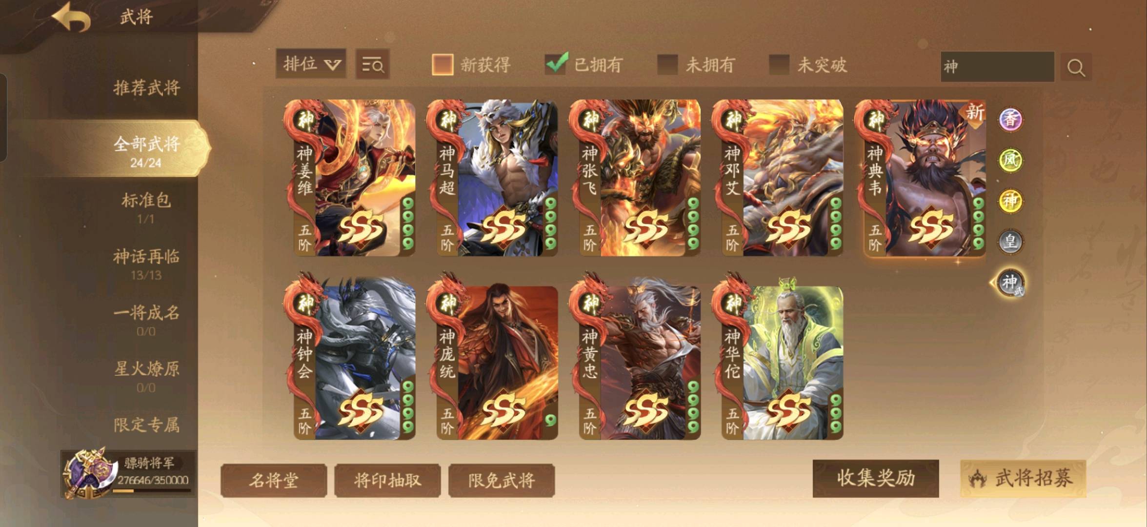 神典韦,神姜维,神邓艾,神钟会,神华佗,神马超,神张飞,神庞统,神黄忠;