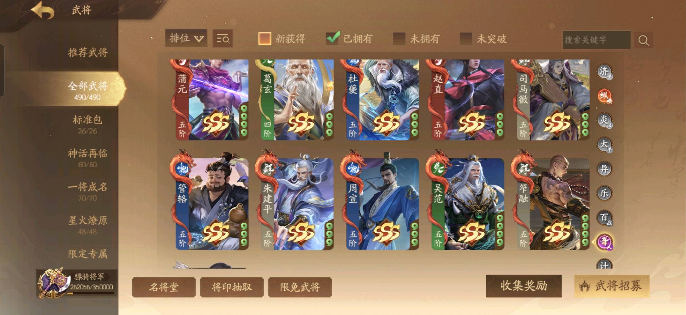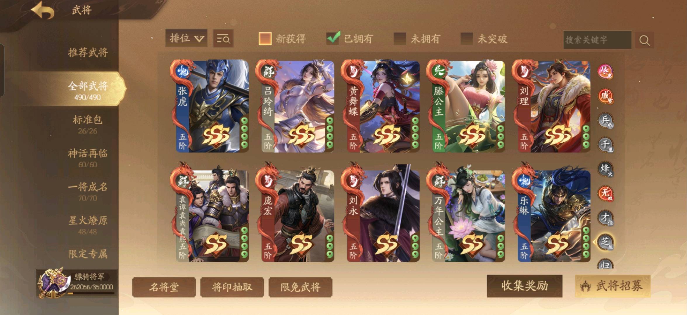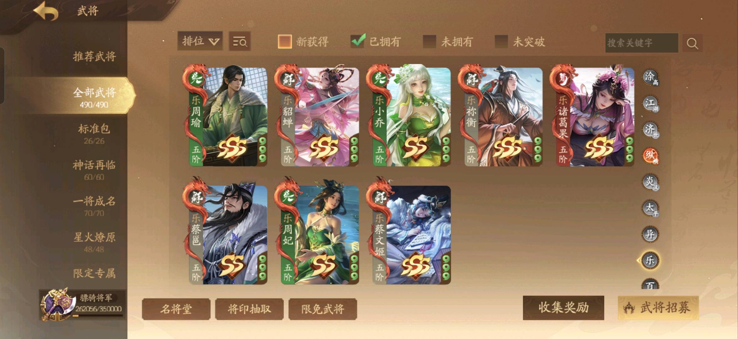 纳贤强将:周宣,司马师,钟毓 ,袁胤,薛灵**,吴范,谋胡烈,朱建平,黄舞蝶,SP甄姬,司马徽,庞宏,徐妏,星曹仁,乐𬘭,张璇,曹宪,诸葛均等;