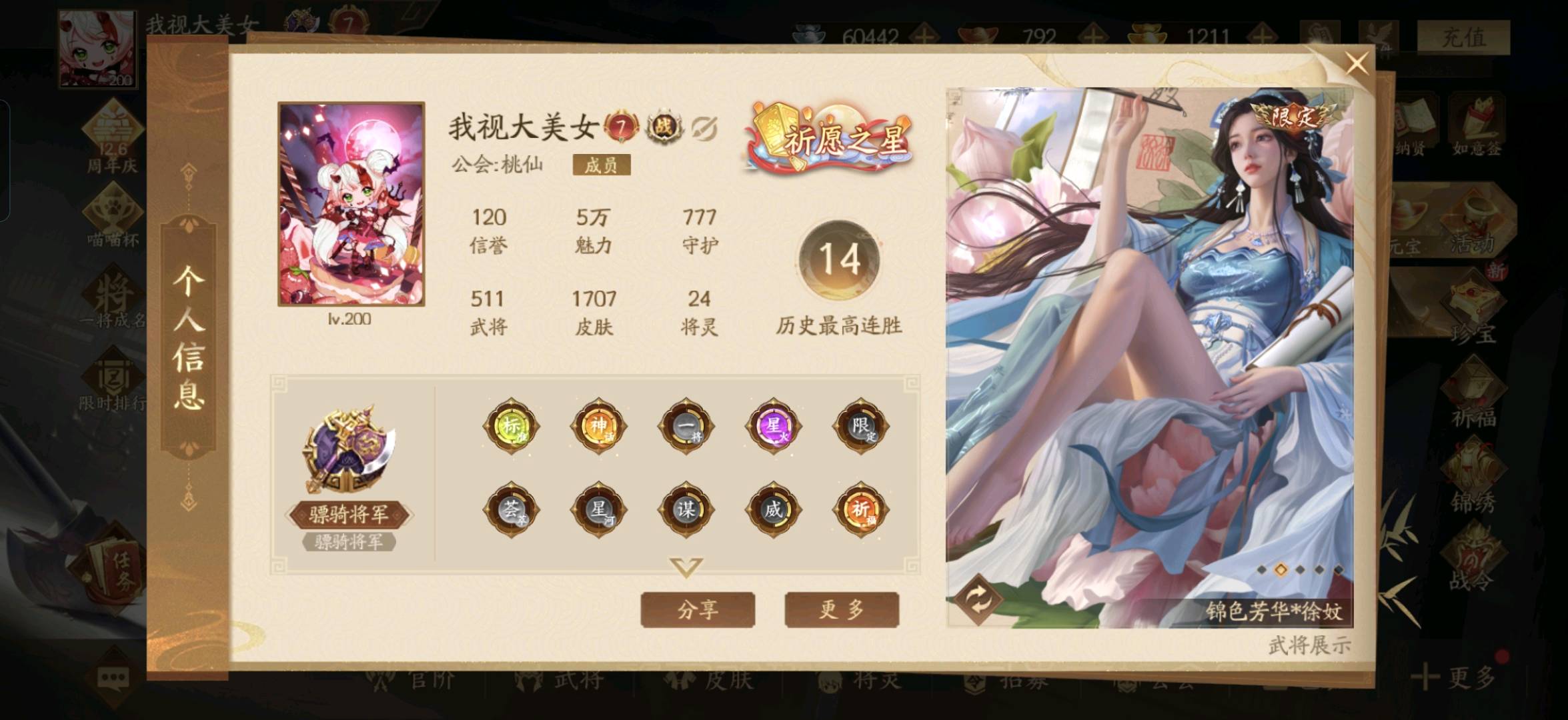 【全平台】 🔥【多赠租送】511将骠骑新氪【威曹操郭缇萦徐妏神典韦】六威九神武三谋九乐许靖1714皮/禁言中