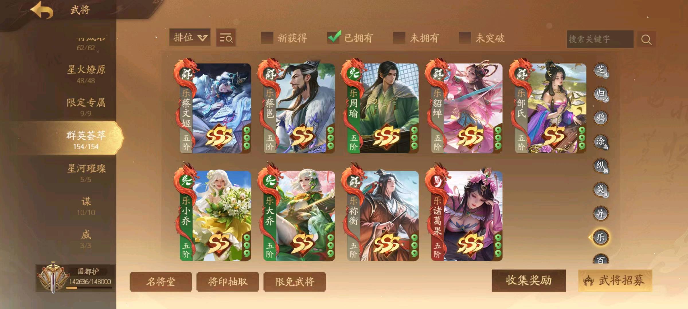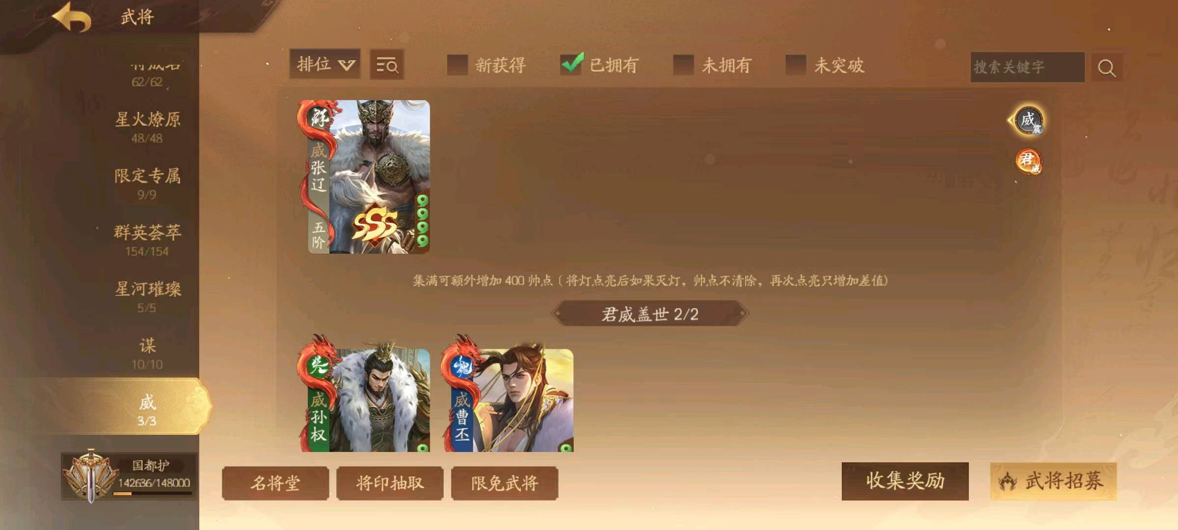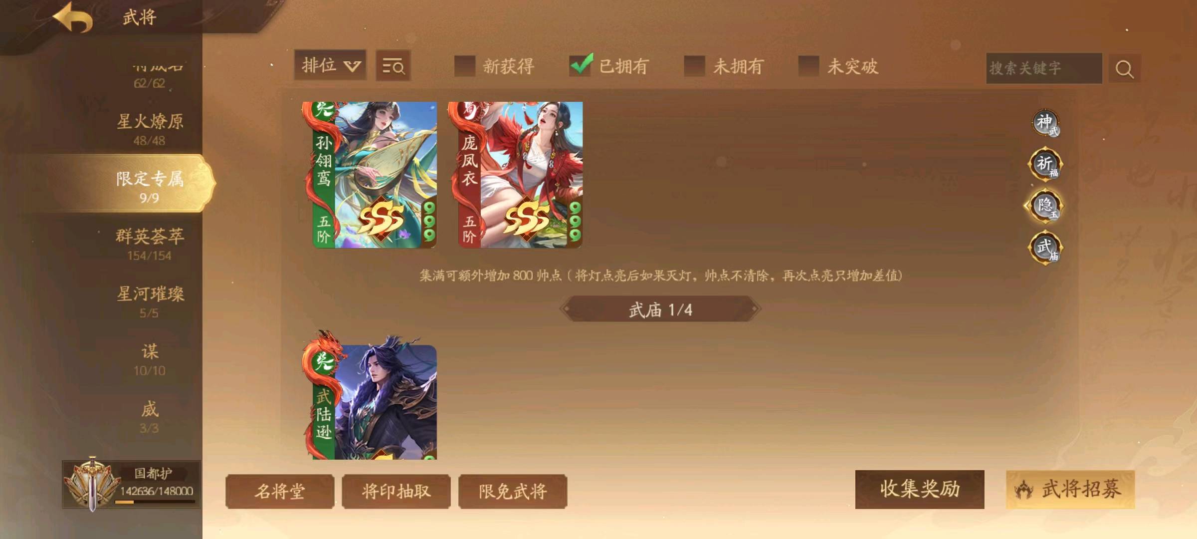 武陆逊 威张辽 威孙权 威曹丕 谋司马懿(隐龙如晦动态)谋姜维(新25玉)谋邓艾 神姜维(炽剑动)神马超(惊雷动)神庞统 赵襄(至臻动)孙翎鸾 庞凤衣(全皮)任婉(传)许靖(丹枫动)曹芳(限)钟毓 庞宏 袁胤(传)乐蔡文姬(姝丽动)乐周瑜 乐貂蝉(传)乐祢衡(传)乐蔡邕(传)乐邹氏(传)乐小乔(限动)乐大乔(传)乐诸葛果(传)夏侯徽(传)诸葛均(传)朱铄 黄舞蝶(限)周宣(幻华动)刘晔(传)薛灵**(限)曹宪(元春动)星曹仁(传)张奂 张嫙 吕玲绮(冰魄动)徐荣 曹婴 谋司马师(传)谋典韦 谋曹昂 谋董承 谋刘协 谋胡烈 星袁术 星袁绍(限动)星董卓 星张春华(传)关宁(限动)滕公主(限动)刘理 庞会(传)陈珪 侯成 贾充 王濬 吕据 文钦 胡遵 芮姬(传)莫琼树(限动)曹媛 全惠解(传)孙霸 清河公主(传动)朱佩兰(传)徐馨(传)卞玥 SP甄姬(限动)张怀(限)周不疑 孙綝(传)陈式 马钧 许劭(限)
