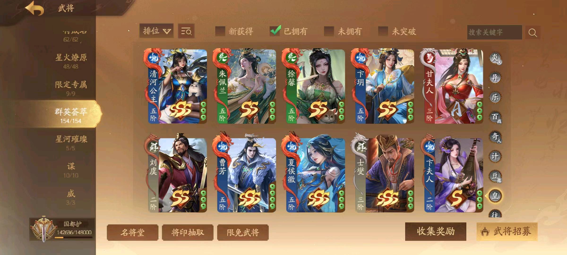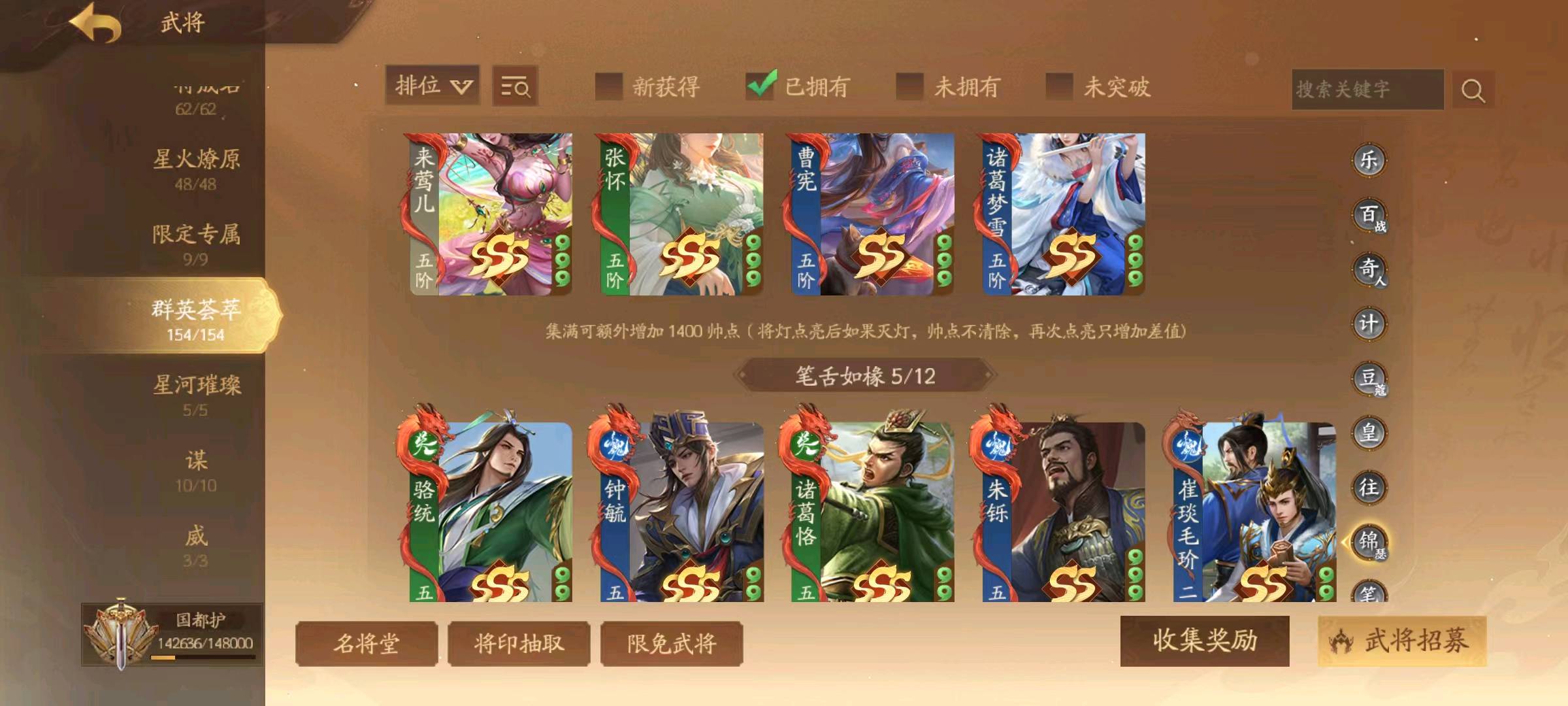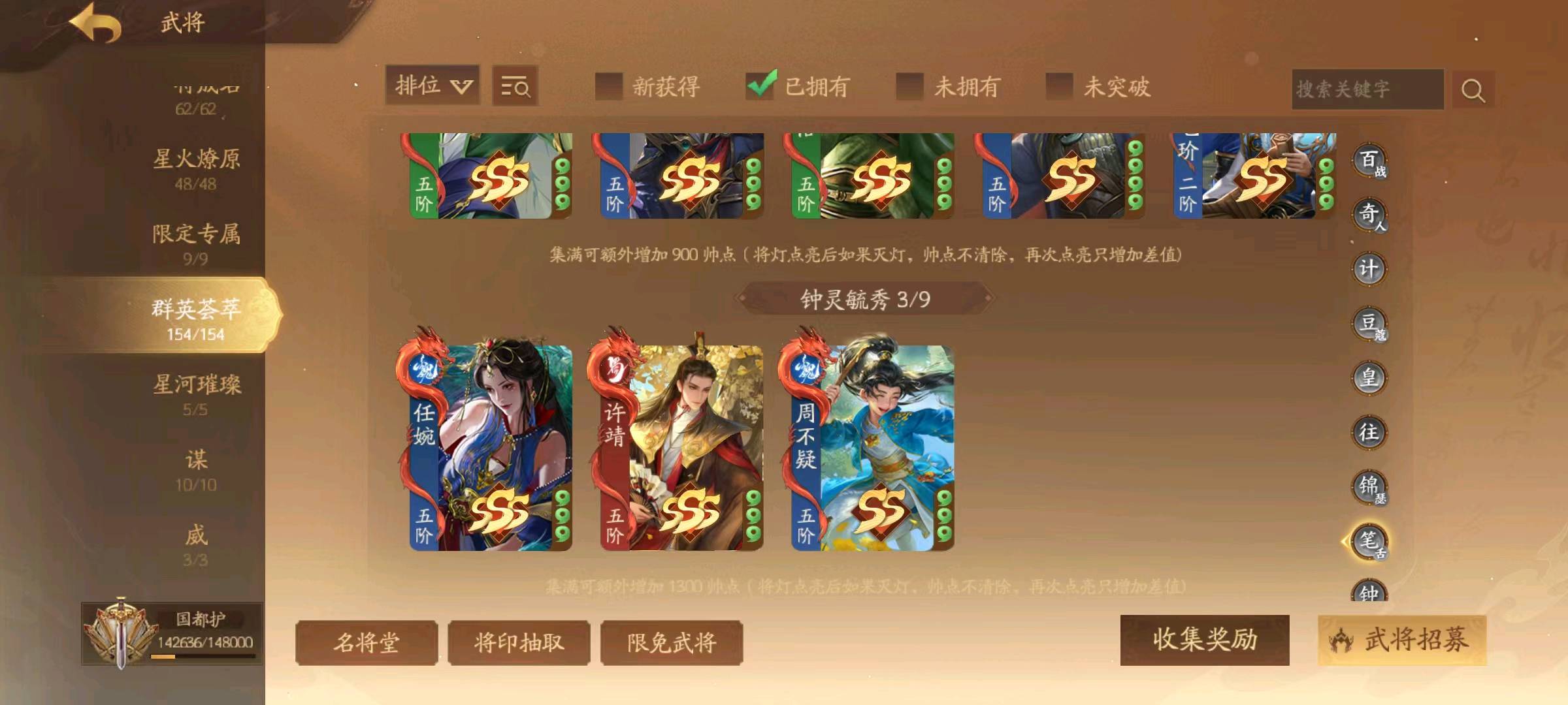 武陆逊 威张辽 威孙权 威曹丕 谋司马懿(隐龙如晦动态)谋姜维(新25玉)谋邓艾 神姜维(炽剑动)神马超(惊雷动)神庞统 赵襄(至臻动)孙翎鸾 庞凤衣(全皮)任婉(传)许靖(丹枫动)曹芳(限)钟毓 庞宏 袁胤(传)乐蔡文姬(姝丽动)乐周瑜 乐貂蝉(传)乐祢衡(传)乐蔡邕(传)乐邹氏(传)乐小乔(限动)乐大乔(传)乐诸葛果(传)夏侯徽(传)诸葛均(传)朱铄 黄舞蝶(限)周宣(幻华动)刘晔(传)薛灵**(限)曹宪(元春动)星曹仁(传)张奂 张嫙 吕玲绮(冰魄动)徐荣 曹婴 谋司马师(传)谋典韦 谋曹昂 谋董承 谋刘协 谋胡烈 星袁术 星袁绍(限动)星董卓 星张春华(传)关宁(限动)滕公主(限动)刘理 庞会(传)陈珪 侯成 贾充 王濬 吕据 文钦 胡遵 芮姬(传)莫琼树(限动)曹媛 全惠解(传)孙霸 清河公主(传动)朱佩兰(传)徐馨(传)卞玥 SP甄姬(限动)张怀(限)周不疑 孙綝(传)陈式 马钧 许劭(限)