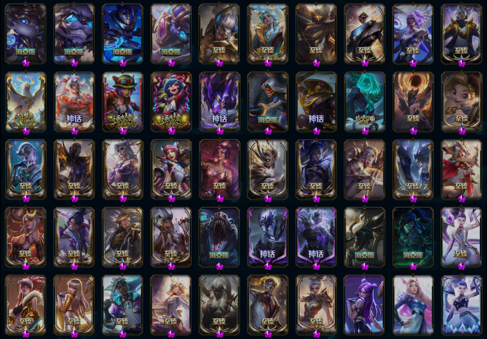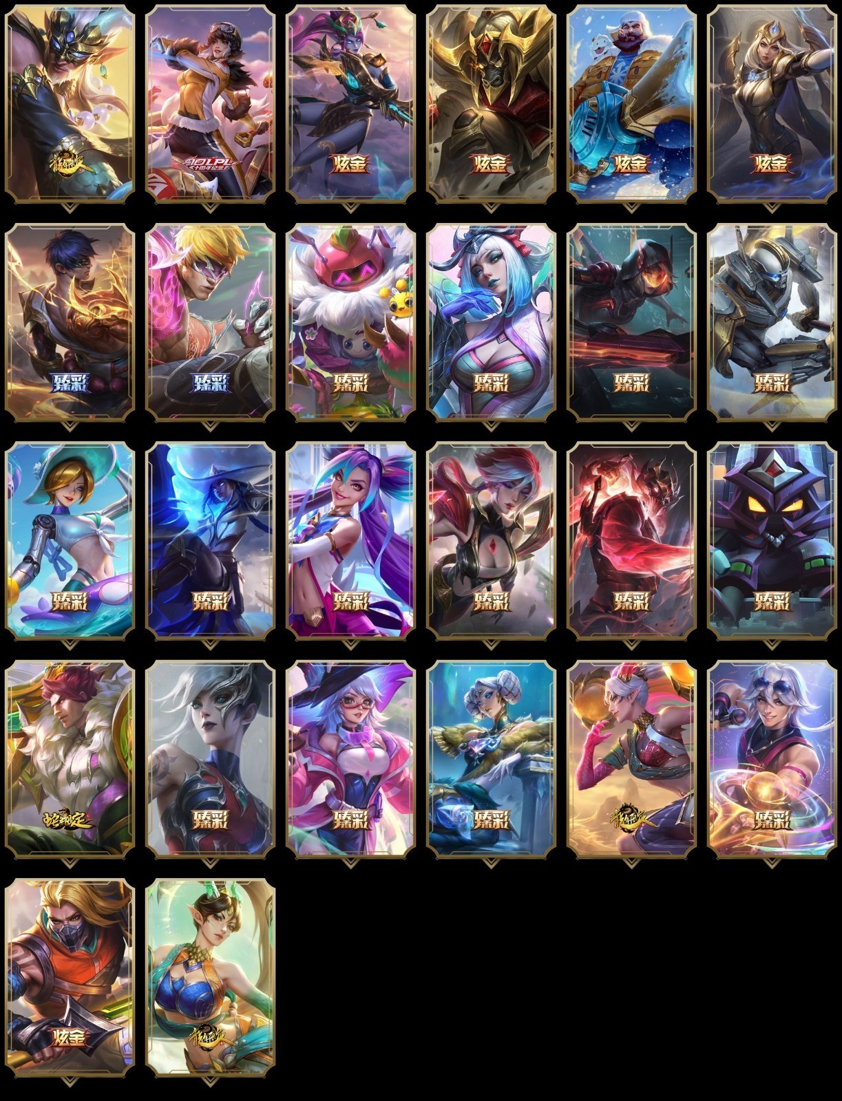 【重要皮肤】青花瓷千珏至臻 天龙之子伊泽瑞尔至臻 北极星钢影卡蜜尔至臻 斗魂觉醒派克至臻 墨之影武者亚索至臻 花仙使者卡特琳娜至臻 剪纸仙灵希维尔至臻 灵魂莲华易至臻 星之守护者艾克至臻 月蚀骑士赛娜至臻 幻灵战斗猫金克丝至臻 神凰行者烈羽焰凰霞至臻 女帝黛安娜至臻 魔女婕拉至臻 奥术师佐伊至臻 真实伤害亚索至臻 星之守护者索拉卡至臻 灵能特工伊泽瑞尔至臻 王国机神玄武盖伦至臻 暗星墨菲特至臻 神龙尊者炎龙瑟提至臻 焰执事布兰德至臻 KDA二代卡莎至臻 KDA一代卡莎至臻 KDA阿卡丽至臻 烈焰美人薇恩至臻 魅惑女巫厄运小姐至臻 魅惑女巫厄运小姐2022至臻 玉剑传说武剑仙至臻 玉剑传说武剑仙2022至臻 腥红之月亚托克斯至臻 未来战士锤石至臻 未来战士锤石2022至臻 灰烬守护者慎 灰烬杀手塞拉斯 海克斯科技雷克顿 海克斯科技克格莫 海克斯科技吉格斯 海克斯科技波比 海克斯科技嘉文四世 海克斯科技阿木木 圣天龙李青 新卧虎藏龙贾克斯 水晶掠夺者卡兹克 零之枪骑赫卡里姆 摄魂使者薇恩 新创战纪希维尔 胜利剑圣易 胜利女神娑娜 胜利之王泰达米尔 胜利巨口克格莫 创星之灵璐璐 钢铁军团拉克丝 荣誉使者玛尔扎哈 养蜂人辛吉德 玉剑传说无劫 玉剑传说舞龙卫 黎明使者薇恩 点心宝贝阿木木 天龙之子黛安娜 天龙之子迦娜 天龙之子卡莎 天龙之子李青 天龙之子斯莫德 天龙之子伊泽瑞尔 天龙之子易 虎头虎脑崔丝塔娜 烈焰仙子黛安娜 定海神珍孙悟空 玉净夜叉凯特琳 纳财大帝塔姆 醒狮克格莫 王国机神青龙德莱文 胜利之树茂凯 胜利机器人布里茨 胜利女神奥莉安娜 胜利枪神格雷福斯 胜利枪神卢锡安 胜利之剑亚托克斯 甜心之翎洛 觅心游侠卢锡安 觅心女王艾希 觅心猫猫悠米 觅心猎手薇恩 幽梦玫瑰辛德拉 幽梦玫瑰泰隆 双城之战2微光实验室辛吉德 冬境仙灵索拉卡 冬季仙境奥莉安娜 雪球也能爆炸吉格斯 圣诞老人布隆 圣诞老人德莱文 冬季仙境卡尔玛 狂心冰王图奇 魄罗骑士瑟庄妮 平安夜女神娑娜 魅惑女巫迦娜 大魔法锅布里茨 灵魂收割者索拉卡 克烈古拉伯爵 海之歌永恩 泳池派对凯特琳 泳池派对辛德拉 泳池派对奥莉安娜 泳池派对塔莉垭 泳池派对塔里克 泳池派对蕾欧娜 御星魔矢艾希 制胜金靴李青 DRX亚托克斯 EDG厄斐琉斯 EDG佛耶戈 EDG格雷福斯 EDG悠米 EDG佐伊 DWG烬 FPX锤石 FPX薇恩 FPX墨菲特 iG卡蜜尔 iG洛 iG卡莎 iG艾瑞莉娅 iG乐芙兰 iG菲奥娜 SSG洛 SSG纳尔 SKTT1扎克 SKTT1辛德拉 SKTT1娜美 SKTT1奥拉夫 SKTT1阿利斯塔 SKTT1阿兹尔 SKTT1雷克顿 SSW泰隆 SSW图奇 SKTT1婕拉 SKTT1薇恩 暗杀星伊泽瑞尔 Fnatic库奇 Fnatic古拉加斯 Fnatic卡尔萨斯 冰雪节格雷福斯 冰雪节辛吉德 防暴士兵辛吉德 防暴天使凯尔 冠军之矛卡莉丝塔 冠军之血希瓦娜 春晖海神卡兹克 春晖神女艾希 鬼影森森茂凯 鬼影重重魔腾 海贼瑞兹 胡桃夹子萨科 警用试作体K9内瑟斯 南瓜头费德提克 破空枪骑孙悟空 圣诞精灵崔丝塔娜 圣诞开心鬼提莫 圣诞狂欢基兰 圣诞老人古拉加斯 圣诞驯鹿克格莫 卧虎藏龙贾克斯 邪恶圣诞老人维迦 雪默丁格 雪球也能爆炸吉格斯 野兽猎人瑟庄妮 野兽猎人泰达米尔 英勇玩具兵普朗克 勇者奈德丽 征服者阿利斯塔 征服者卡尔玛 暗影沃里克 机械迷城加里奥 魅惑女巫辛德拉 阿木木主人不要我了 都铎王朝图奇 十五周年纪念希维尔 十周年纪念安妮 源代码乐芙兰 神凰行者瑞羽圣凰艾尼维亚 胜利凤凰艾尼维亚 灵魂守卫乌迪尔 武装战姬厄运小姐 绝息圣堂洛