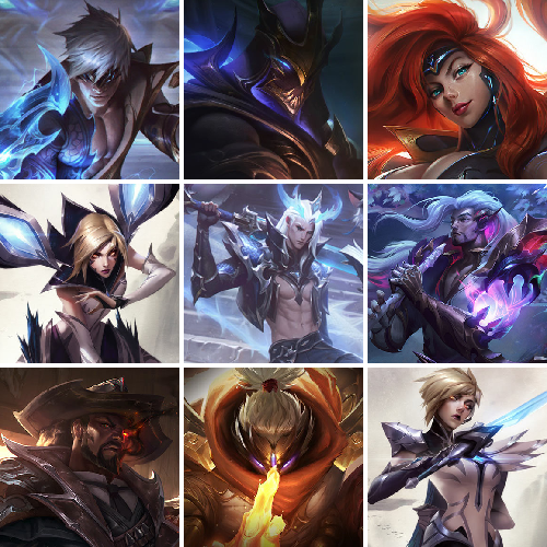 【传说皮肤】至尊魔女莫甘娜 魔幻卡牌崔斯特 黯晶凤凰艾尼维亚 神王盖伦 女校长菲奥娜 红色男爵库奇 血石领主弗拉基米尔 真实伤害艾克 女帝卡特琳娜 太空律动猫猫布里和里茨 绝息圣堂锐雯 魔女伊芙琳 天煞劫 耀星女神拉克丝 灌篮高手德莱厄斯 神龙尊者夜月幻龙亚索 日蚀骑士蕾欧娜 西部魔影大小姐蕾欧娜 女主播迦娜 蔷薇绅士杰斯 源计划泯灭雷克顿 源计划联合艾希 源计划林易 苹果机器人布里茨 神拳李青 焰尾妖狐阿狸 钢铁军团盖伦 双重冰晶艾尼维亚 陆地王者4WD布里茨 烈焰雄心崔丝塔娜 泳池派对吉格斯 恶魔男爵瑞兹 腥红之月鬼武姬阿卡丽 源计划净化薇恩 西部魔影卢锡安 战斗学院伊泽瑞尔 女警狙击凯特琳 合金巨兽努努和威朗普 第三类接触黑默丁格 律政大亨蒙多 苍穹之光韦鲁斯 恶魔之刃泰达米尔 偶像歌手阿狸 驯龙炮手崔丝塔娜 未来战士凯特琳 暗星女王拉克丝 战地机甲厄加特 枯萎之壤泽拉斯 战地巨兽科加斯 冰霜亚龙希瓦娜 黑夜使者亚索 驯龙学者黑默丁格 灵魂莲华锤石 宇航员诺提勒斯 星之守护者卡莎 黯黑魔龙希瓦娜 星之守护者阿狸 星之守护者霞 女皇艾希 绅士科加斯 星之守护者拉克丝 最终BOSS维迦 源计划毁灭派克 炼狱魔犬内瑟斯 欧米伽小队幽灵特工 金牌主播德莱文 大天使长米迦勒凯尔 冰川巨兽墨菲特 上古战魂魔腾 电玩女神娑娜 铁哥们儿奥拉夫 西部天使艾希 地狱之门卫士加里奥 灵能特工娑娜 霸天零式赛恩 鬼魂新娘莫甘娜 战场女武神凯尔 冰霜之刃艾瑞莉娅 神龙尊者圣龙李青 暗星尊烬 钢铁之翼凯尔 星之守护者金克丝 霸天异形卡兹克 神王德莱厄斯 约德尔国队长提莫 死亡骑士盖伦
