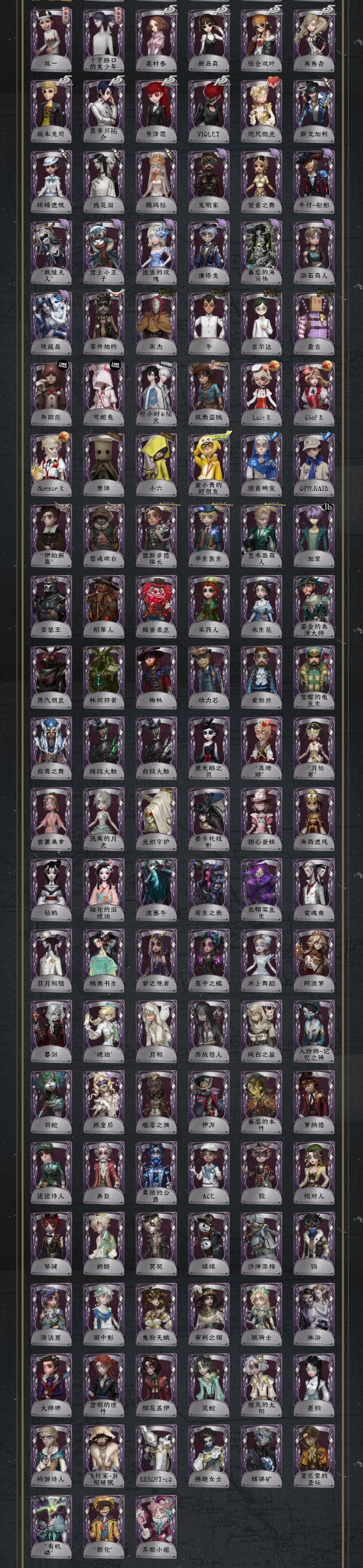 662稀世43奇珍13421稀世0奇珍3139稀世13奇珍41角色数70涂鸦431头像371头像框123等待动作121个性动作193追击音乐14归宿分1.4万司药邪眼寄主“温室”破碎的芙拉吉尔熔岩蛋糕溯光恒梦石榴碟小姐哲人石猎物的印记时空之影-墨菲斯的门廊灰云红骑士星之王不合时宜的危鲁弗死生之谕川上富江雨宫莲JOKER明智吾郎CROW穆希卡B.Duck乌骨粲然的北辰枭徒福尔摩斯“华生小姐”金纹大触盛宴伯爵忘川渡人夜来香尼德霍格变彩耶梦加得盖提亚之遗盛夏飞盘茶话会海盐特调灵犀妙探冠军舵手星相师“渊”“阿拉丁”光学镜面蒸汽少年麒麟商人“加特”双一十字路口的美少年奥村春新岛真佐仓双叶高卷杏坂本龙司喜多川祐介芳泽霞VIOLET咫尺微光斯文加利琼楼遗恨残花泪撒玛拉发明家梵音之舞牛仔-船影“裁缝夫人”雪上小王子逐浪的玫瑰潘塔龙善忘的海马体浴石商人收藏品零件拍档宋杰冬吉尔达查吉布朗熊可妮兔程小时&陆光双面盗贼Lady KChef KMentor K摩诺小六蛋小黄的好朋友弦音畸变OPH.NAIB“伊始新篇”警戒哨台雷斯垂德探长华生医生艺术品商人加里亚瑟王稻草人捣蛋裘克采药人永生花鎏金的表演大师蒸汽朋克林间狩者梅林动力芯爱丽丝警醒的龟先生白鹰之舞绿纹大触白纹大触黑天鹅之羽“苏珊娜”“月佑者”香薰流离的月光光织守护墨卡托投影甜心蛋糕海西遗风仙鹤融化的泪琥珀波塞冬寄生之面衣帽架先生安魂曲日月相随桃面书生梦之使者笼中之蝶冰上舞蹈阿波罗暮剑“琥珀”月相历战猎人纯白之盐入殓师-记忆之骑羽蛇纸皇后噬恶之渊伊万善恶的本性罗纳德迷途诗人弄臣青须的公爵ACE狡校对人琴键奶酪冥契球球沙滩漂移钨清洁翼湖中影鬼天蛾审判之翎银骑士淋浴大师牌澄明的理性烟花盖伊灵蛇熄灭的太阳墨韵吟游诗人飞行家-异相睡眠KNIGHT-c3拂晓女士辉锑矿斐乐蒙的圣坛“有机磷”“膨化”茶歇小姐图鉴内容来源于游戏数据 数据更新时间:2025.09.30Scan me!x去「大神」搜索“第五人格个人图鉴”生成你的专属图鉴