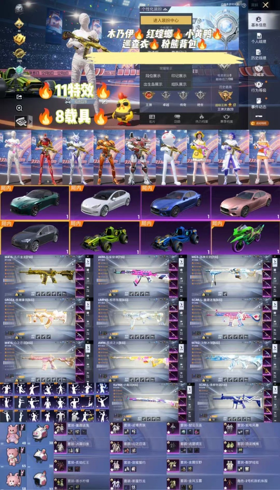 【苹果】 包天特价❤14特效/3满级枪❤8载具/木乃伊/红螳螂/巡查衣/小熊背包/极品素材主播身法号❤