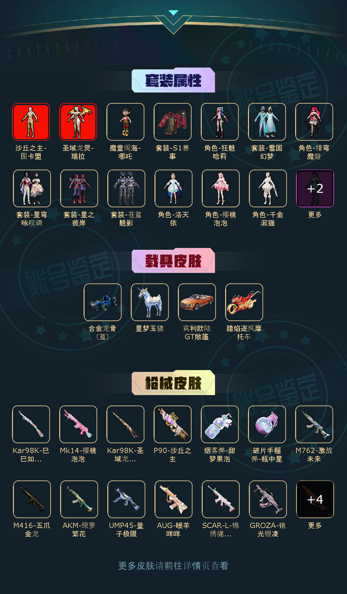 14粉,4载具,323套装,满级木乃伊,40王牌印记,无敌战神历史最高段,163091热力值 平底锅-林间仙鹿/Vector-绯穹魔姬/AKM-绿萝繁花/M762-激战未来/M416-五爪金龙/AUG-暖羊咩咩/SCAR-L-锦绣绵绵/GROZA-镜光银凌/SCAR-L-魔童闹海 哪吒/Mk14-樱桃泡泡/MG-36-沧焰双生/DP-28-豹影疾电/UMP45-量子极限/P90-沙丘之主/破片手榴弹-瓶中星球/烟雾弹-甜梦果泡/Kar98K-圣域龙灵/Kar98K-巳巳如意/宾利欧陆GT敞篷(火焰橘)/合金龙骨(蓝)/星梦玉骢/踏焰逐风摩托车/