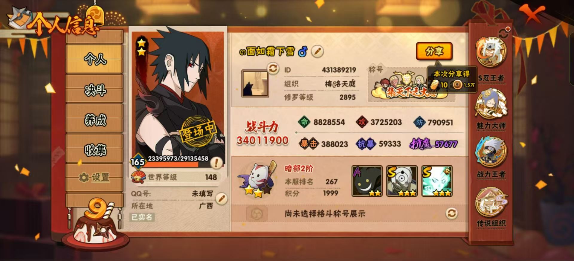 侠隐佐助 九喇嘛水 漂泊带土 绯流琥蝎 须佐卡卡西 53S 98A 3000万 须佐止水 新春大蛇丸
