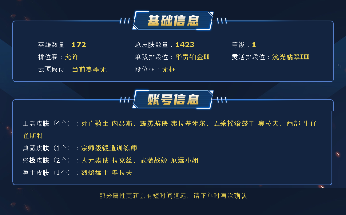 ~~喜欢记得收藏~~可排位~~1347皮全英雄~~租之前尽量查一下游戏ID,确保段位是您需要的,避免浪费您的时间~~请勿挂机逃跑故意送人头,谢谢合作,谢谢~~