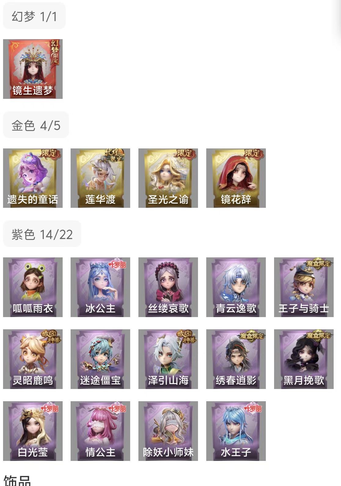 【全平台】 1红✨4金✨14紫✨有灵宝✨莲华渡✨镜生遗梦✨圣光之谕✨镜花辞✨王子与骑士✨青云逸歌