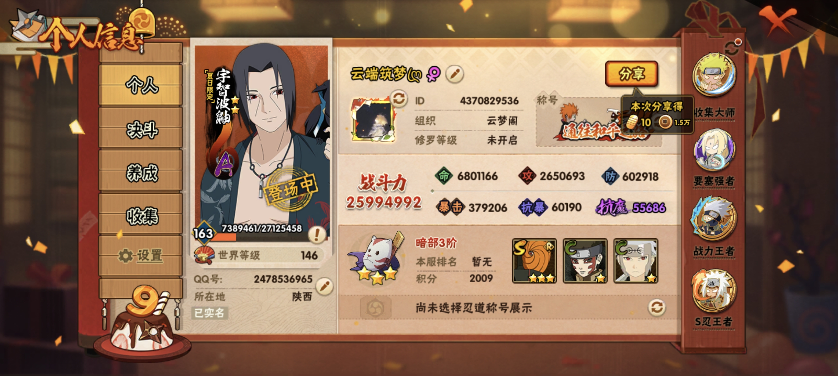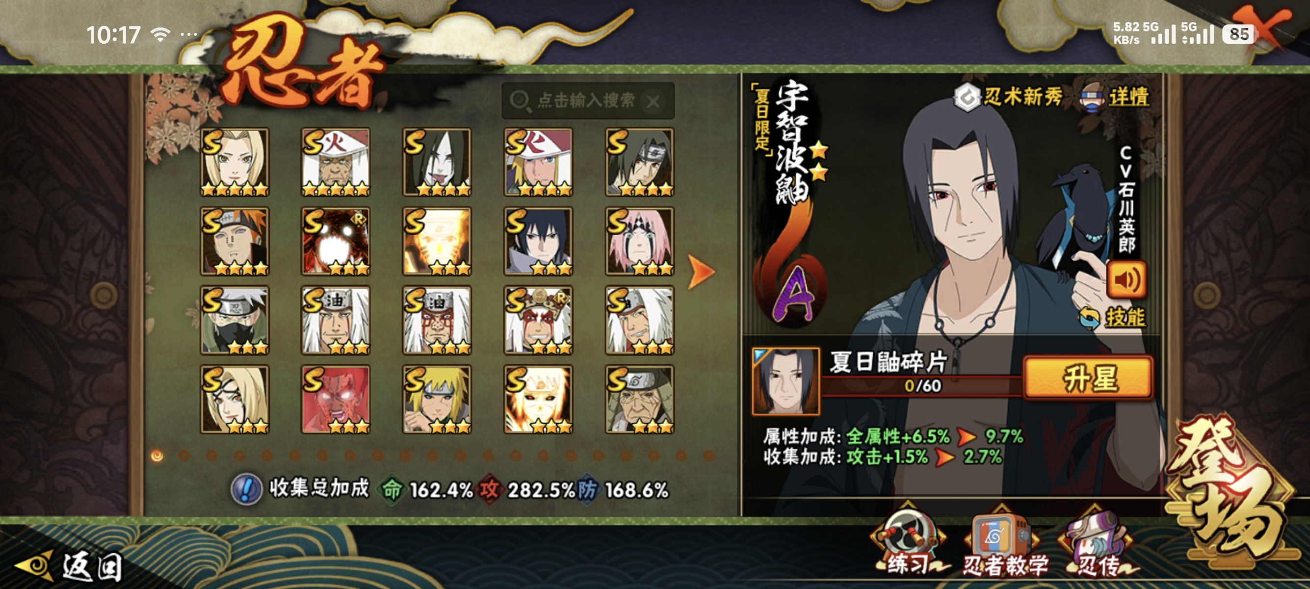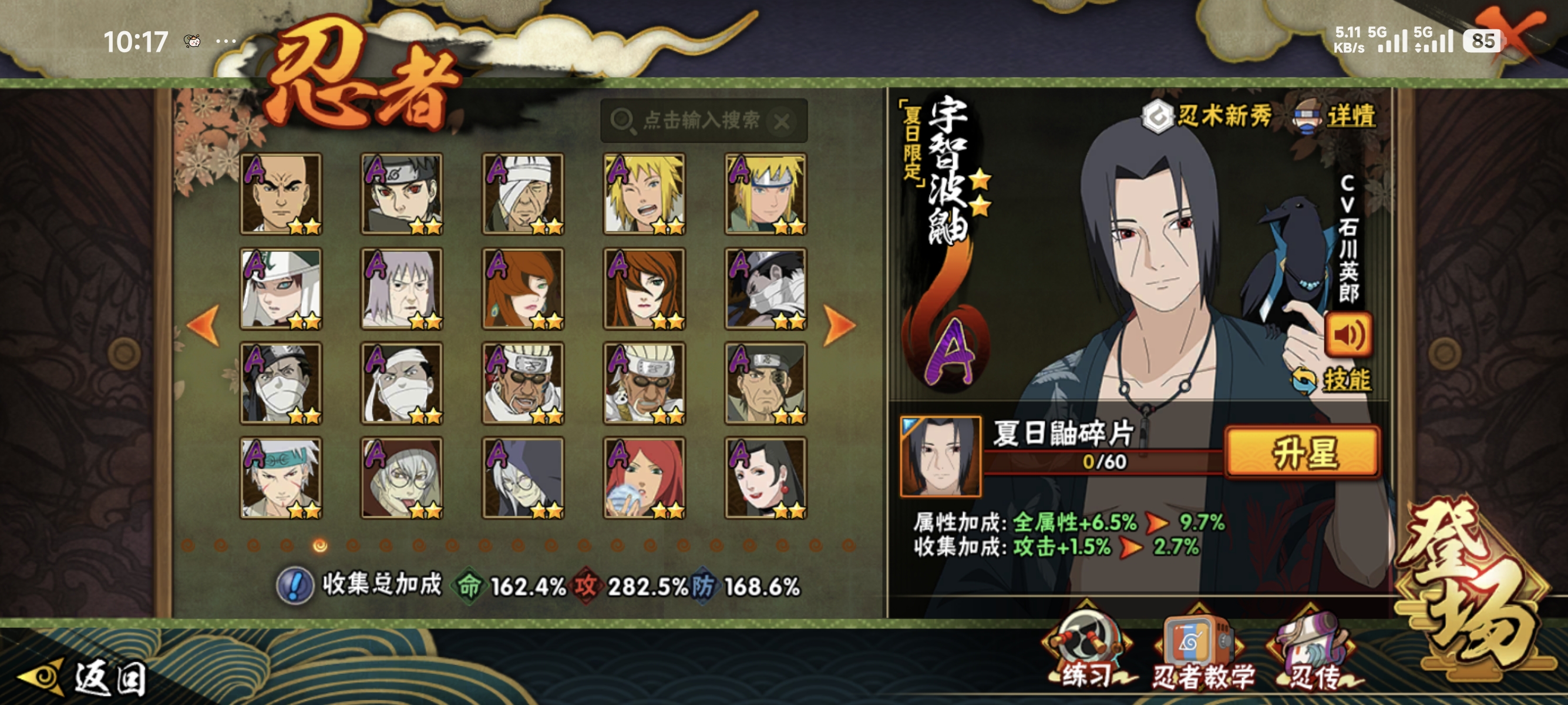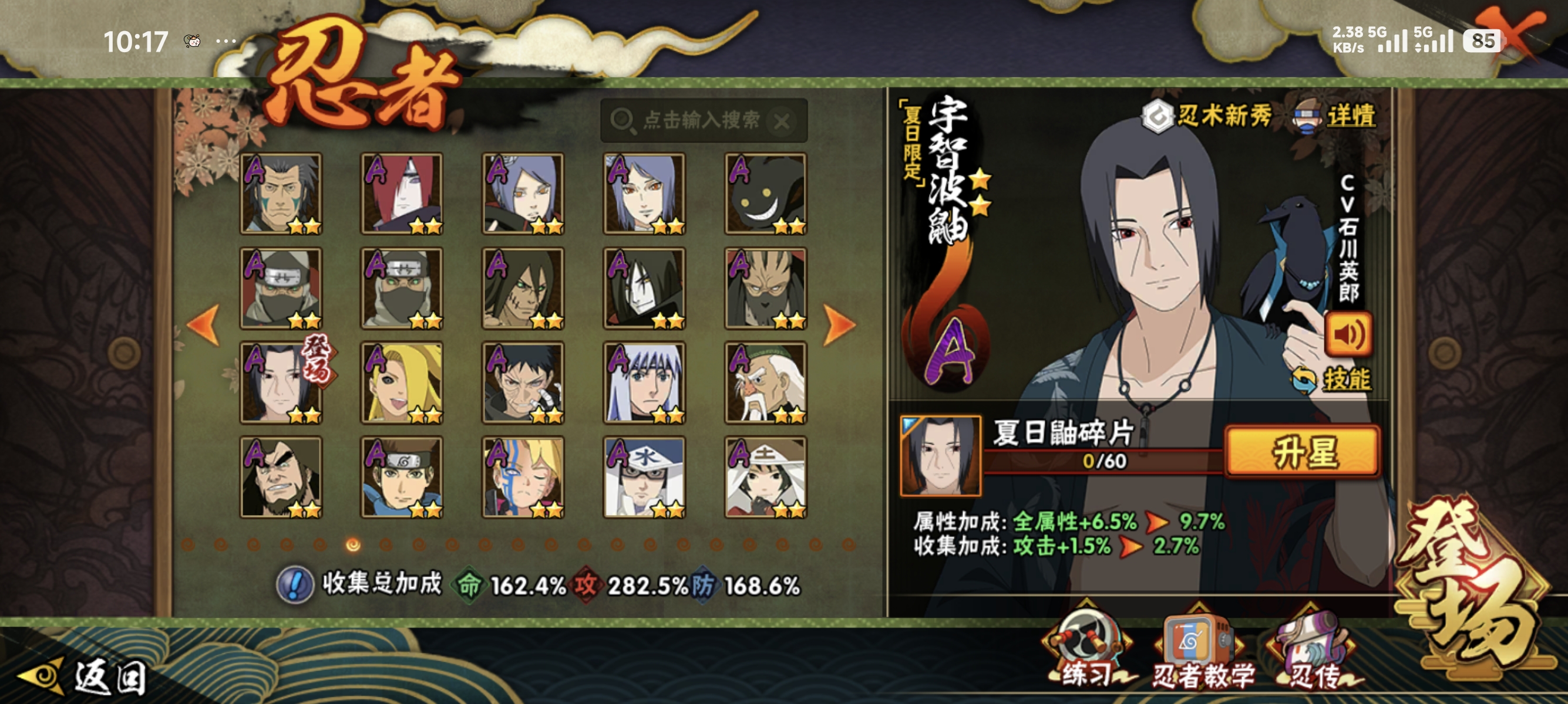 A级忍者(49个) : 宇智波鼬,飞段「死司凭血」,角都,飞段,我爱罗「疾风传」 ,波风水门「新春限定」,迪达拉,蝎,迈特凯,猿飞阿斯玛,干柿鬼鲛,宇智波止水,小南,旗木卡卡西「万花筒写轮眼J都「地怨虞」,漩涡鸣人「仙人模式」奇拉比,宇智波佐助「万花筒写轮眼照美冥「五代目水影」,春野樱「百豪」 ,大蛇丸「晓J秋道丁次「忍界大战」,我爱罗I忍界大战」,药师兜「半蛇斗篷」,千代「近松十人卫」,漩涡鸣人「九尾查克拉」,猿飞木叶丸「博人传」,旗木卡卡西「忍界大战」,小南「新春限定」,迪达拉「秽 土转生」,宇智波佐助「须佐能乎」,黑土「博人传」,天天「忍界大战」将近300忍者宇智波波止水「新春限定」奇拉比「忍界大战」,波风水门「青年」,「忍者之路」神秘面具男,不风,达鲁伊「博人传」,迪达拉「新春限定」,艾「青年」佩恩六道「漂泊浪客」,长门「青年」卑留呼,纲手「侠隐江湖J长十郎「六代目 水影」我爱罗新春限定」 ,日向宁次「忍界大战] ,小南「漂 泊浪客体验328忍者648忍者198忍者98忍者点券忍者直购忍者漂泊小南漂泊扉间漂泊佩恩漂泊再不斩泳装卡卡西新春小南侠影纲手侠影照美冥青年水门忍战我爱罗新春我爱罗新春卡卡西新春鼬新春水门新春止水新春小南新春迪达拉不缘不风忍界大战宁次面麻卑留呼桀骜阿斯玛鲛肌融合九喇嘛鸣人忍战小樱百豪纲手百豪小樱死门凯百战水门百战大蛇丸秽土三代秽土扉间秽土二代初代柱间秽土初代创立柱间秽土斑秽土解斑创立斑面具男神秘面具男雷影红叶之刃面具男红面具鲛肌融合鬼鲛桀骜阿斯玛秽土长门忍战大野木无金式仙人兜泳装卡卡西泳装纲手泳装萨姆伊泳装鼬夏日鼬乌鸦宇智波鼬夏日限定夏日泳装鼬永恒佐助最终章雏田黑婚纱雏田日向雏田最终章卡卡西幻之真容辛牙真容卡卡西旗木卡卡西幻之真容忍战雷影断臂雷影雷影忍界大战忍战艾桃博桃式显现博人忍战小李忍战雷影须佐止水未购买百战佩恩冬日夕日红全忍者全s忍者全高招忍者全点券忍者全忍法帖忍者百战佩恩团本号带团号须佐卡卡西须佐能乎体验卡新春全系列百战全系列泳装全系列漂泊全系列全通灵全密卷全忍者新春大蛇丸绯流琥蝎体验卡自来也传说中的三忍传说自来也传说中的三忍自来也[传说中的三忍六尾鸣人暴怒六尾鸣人暴怒鸣人忍漩涡鸣人「暴怒·第六尾」夏日黑土夏日香燐金身水门金身波风水门九喇嘛水门九喇嘛波风水门阴金水门死水波风水门「九喇嘛连结」五影会谈带土五影会谈斑五影带土五影仙人巳月仙人「初始形态」宇智波佐助「侠隐江湖」侠影佐助 大野木「侠隐江湖」侠影江湖大野木宇智波斑「五影会谈」秽土巳月「仙人模式」全忍者纲手「妖怪奇谭」夏日鼬泳装鼬宇智波斑「五影会谈」宇智波带土「漂泊带土」天道超大野木「侠影江湖」黑绝十周年鸣佐宿命连接漩涡鸣人·宇智波佐助