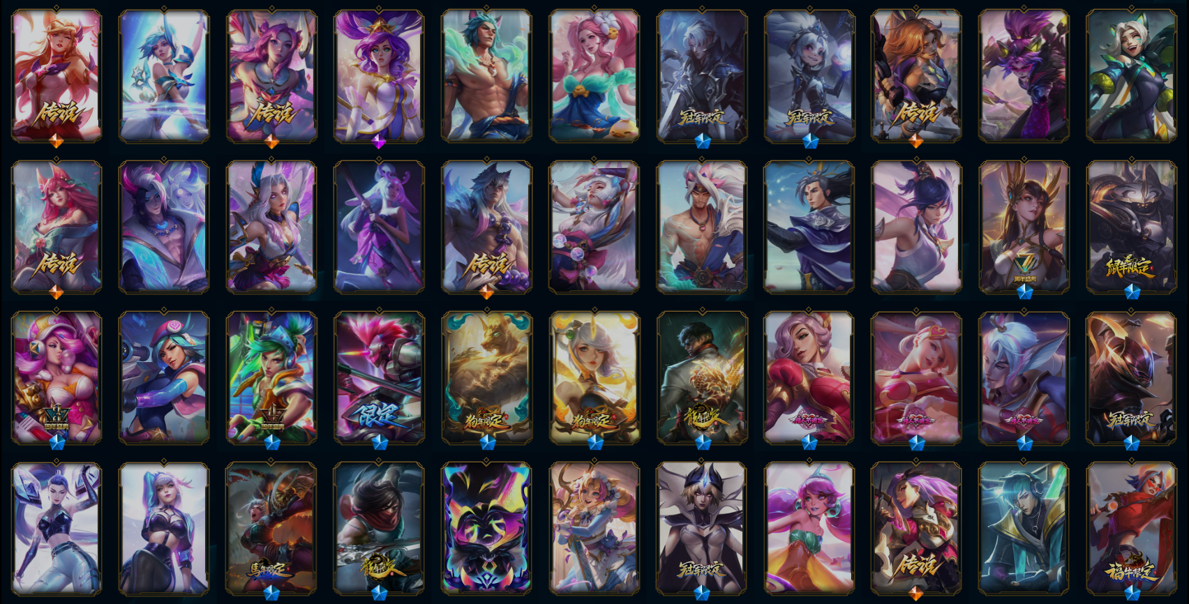 【传说皮肤】星之守护者拉克丝 灵能特工娑娜 源计划泯灭雷克顿 太空律动猫猫布里和里茨 暗星尊烬 源计划毁灭派克 西部魔影卢锡安 女帝卡特琳娜 星之守护者阿狸 战地巨兽科加斯 星之守护者洛 西部天使艾希 源计划超体莫德凯撒 约德尔国队长提莫 幻灵战斗队长厄运小姐 丧尸布兰德 西部魔影大小姐蕾欧娜 恶魔之刃泰达米尔 魔幻卡牌崔斯特 炼狱魔犬内瑟斯 星之守护者卡莎 灵魂莲华瑟提 苹果机器人布里茨 腥红之月鬼武姬阿卡丽 偶像歌手阿狸 双重冰晶艾尼维亚 暗星锤石 西部天使赛娜 真实伤害艾克 战斗学院伊泽瑞尔 源计划联合艾希 天煞劫 灵魂莲华阿狸 黎明使者锐雯 陆地王者4WD布里茨 神拳李青 黎明使者索拉卡 欧米伽小队幽灵特工 律政大亨蒙多 地狱行者孙悟空 至尊魔女莫甘娜 铁哥们儿奥拉夫 最终BOSS维迦 上古战魂魔腾 黎明使者永恩 焰尾妖狐阿狸 红色男爵库奇 钢铁之翼凯尔 第三类接触黑默丁格 宇航员诺提勒斯 黯黑魔龙希瓦娜 驯龙学者黑默丁格 女主播迦娜 神龙尊者昼日真龙亚索 光明哨兵格雷福斯 血石领主弗拉基米尔 女警狙击凯特琳 神王盖伦 未来战士凯特琳 源计划净化薇恩 大天使长米迦勒凯尔 霸天异形卡兹克 恶魔男爵瑞兹 黑夜使者亚索 死亡骑士盖伦 提莫约德尔人的一大步 蔷薇绅士杰斯 女皇艾希 奥德赛凯隐 黑夜使者索拉卡 星之守护者霞 绅士科加斯 黯晶凤凰艾尼维亚 地狱之门卫士加里奥 女校长菲奥娜 符文战熊沃利贝尔 电玩女神娑娜 泳池派对吉格斯 邪鸦魅影乐芙兰 冰川巨兽墨菲特 烈焰雄心崔丝塔娜