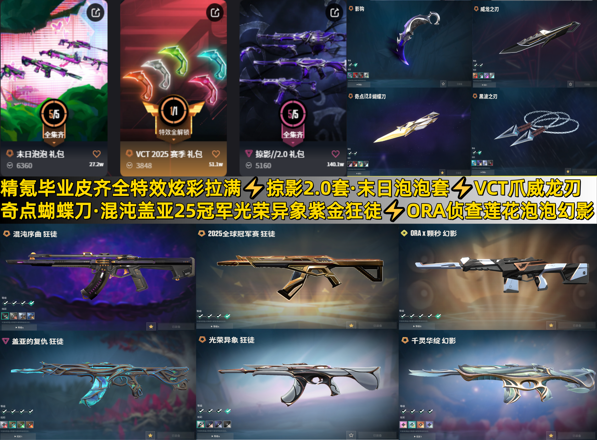 【当前段位:钻石I】精氪毕业皮齐全掠影2.0泡泡套⚡VCT威龙刃影勾蝴蝶刀·25冠军混沌盖亚异象狂徒·ORA莲花侦查幻影