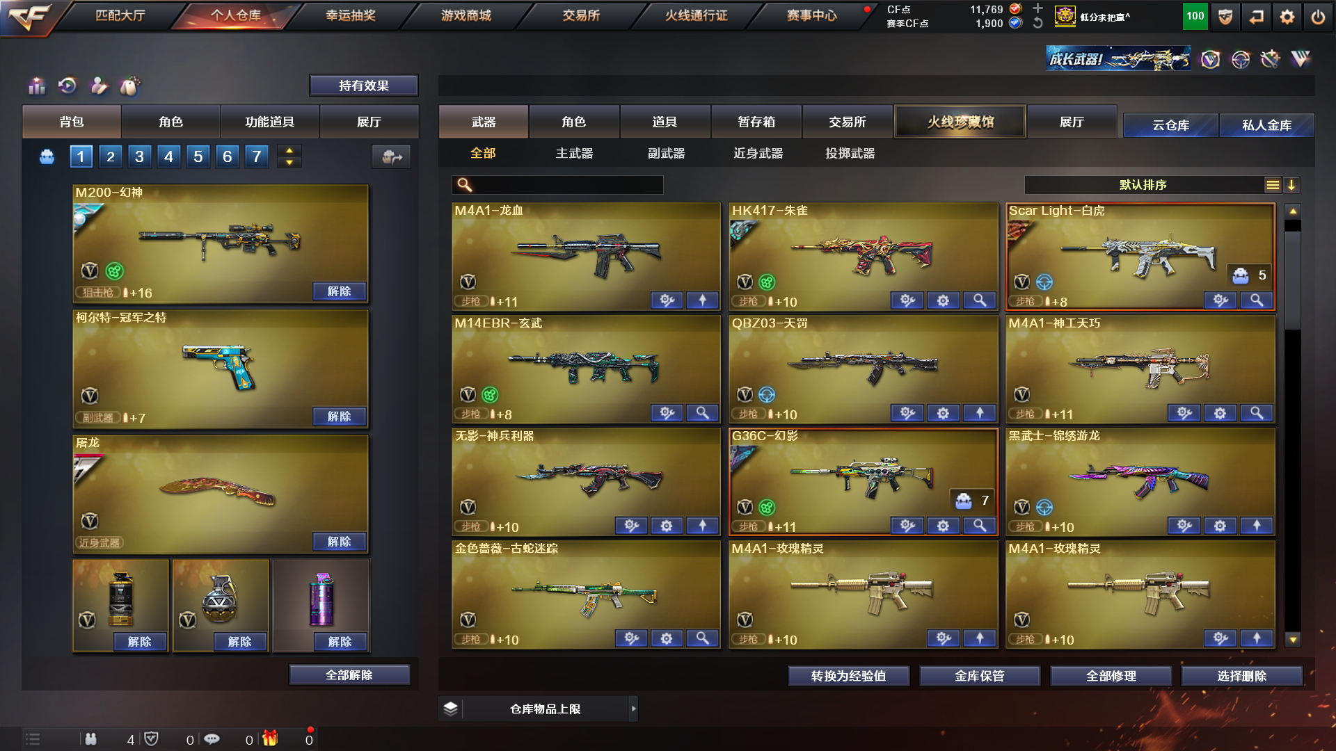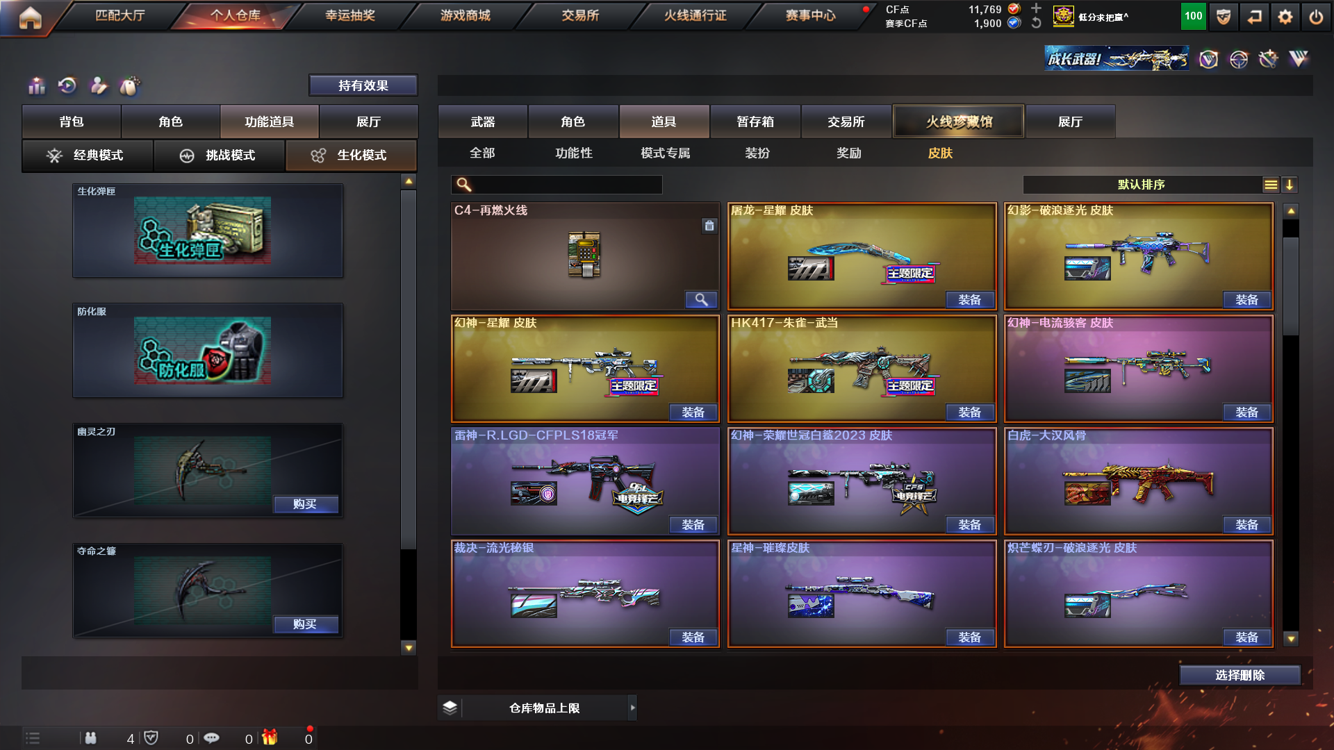 传说灵眸,幻神4皮音效卡,星神,双蝴蝶刀,六烈盘蝴蝶小刚,隼,g36c幻影,加特林三件套满生化皮肤