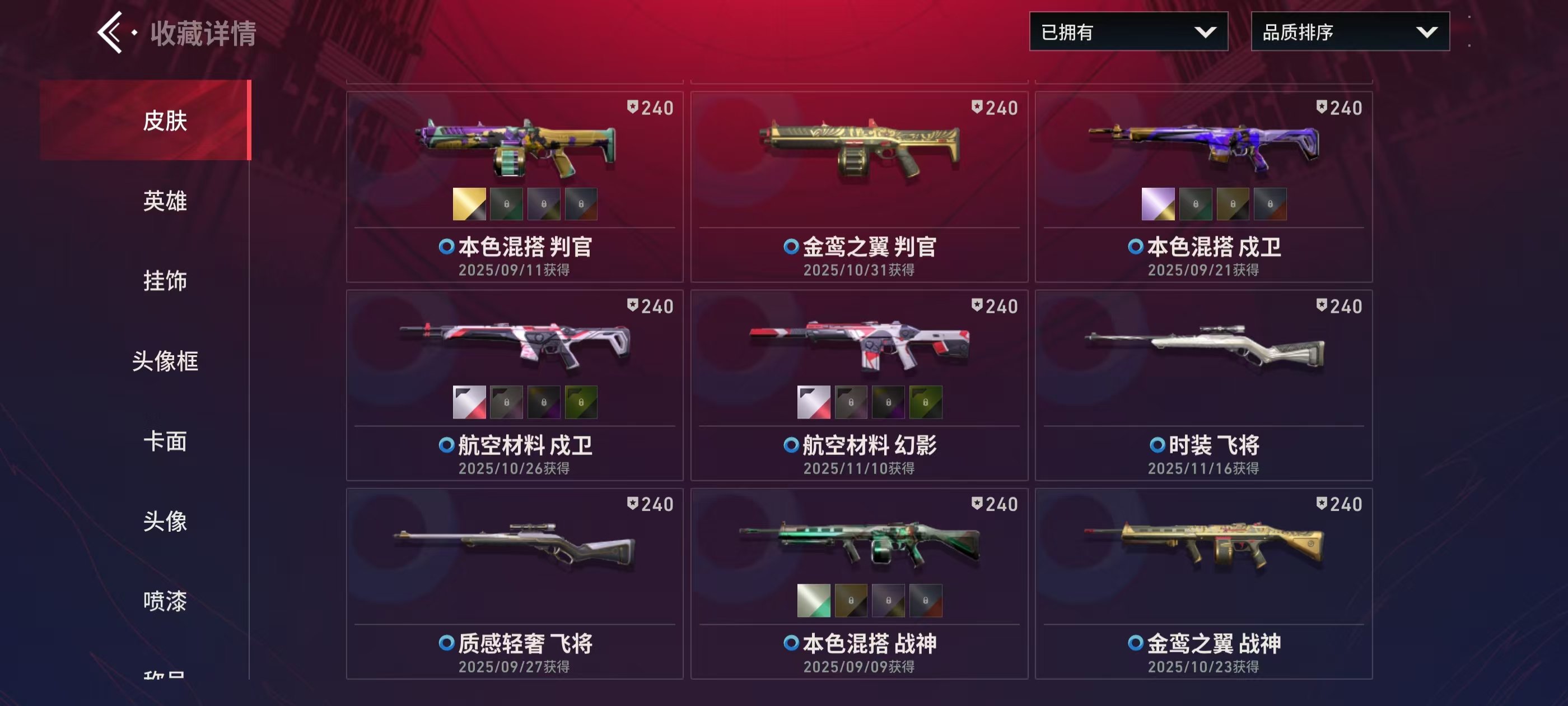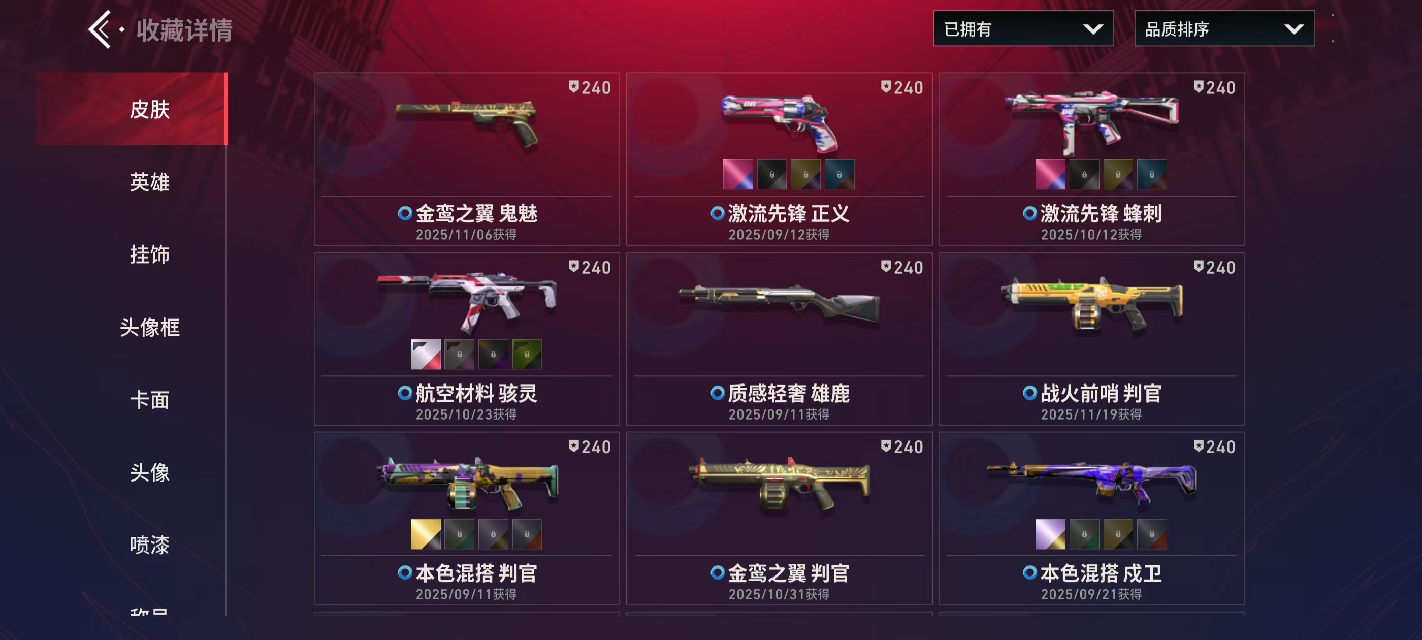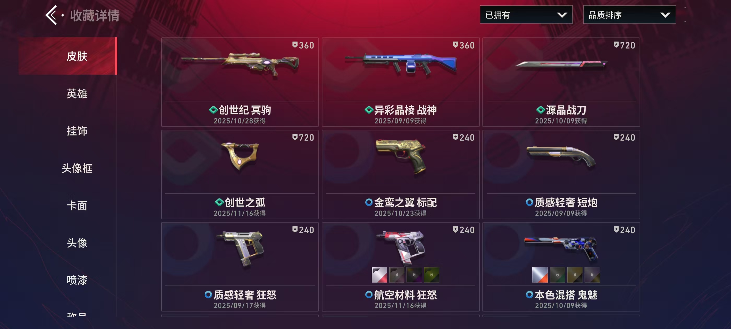 24级收藏家 VCT爪刀 沧澜戟 醒狮 超限推进 怒海惊澜 781协议幻影 堕天遗武 盖亚的复仇 狂徒