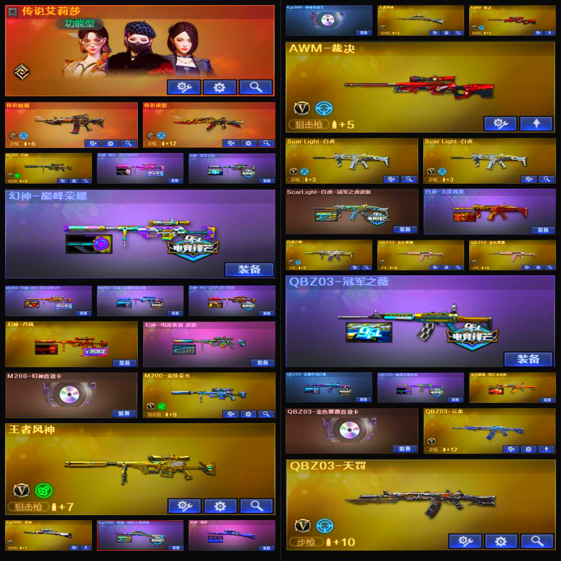 【允许排位】幻神10皮✅幻神三件套✅星神三件套✅冠军白虎✅幻影✅夜影暗裔✅满手枪✅全音效卡✅6烈蝴蝶✅冠军小刀