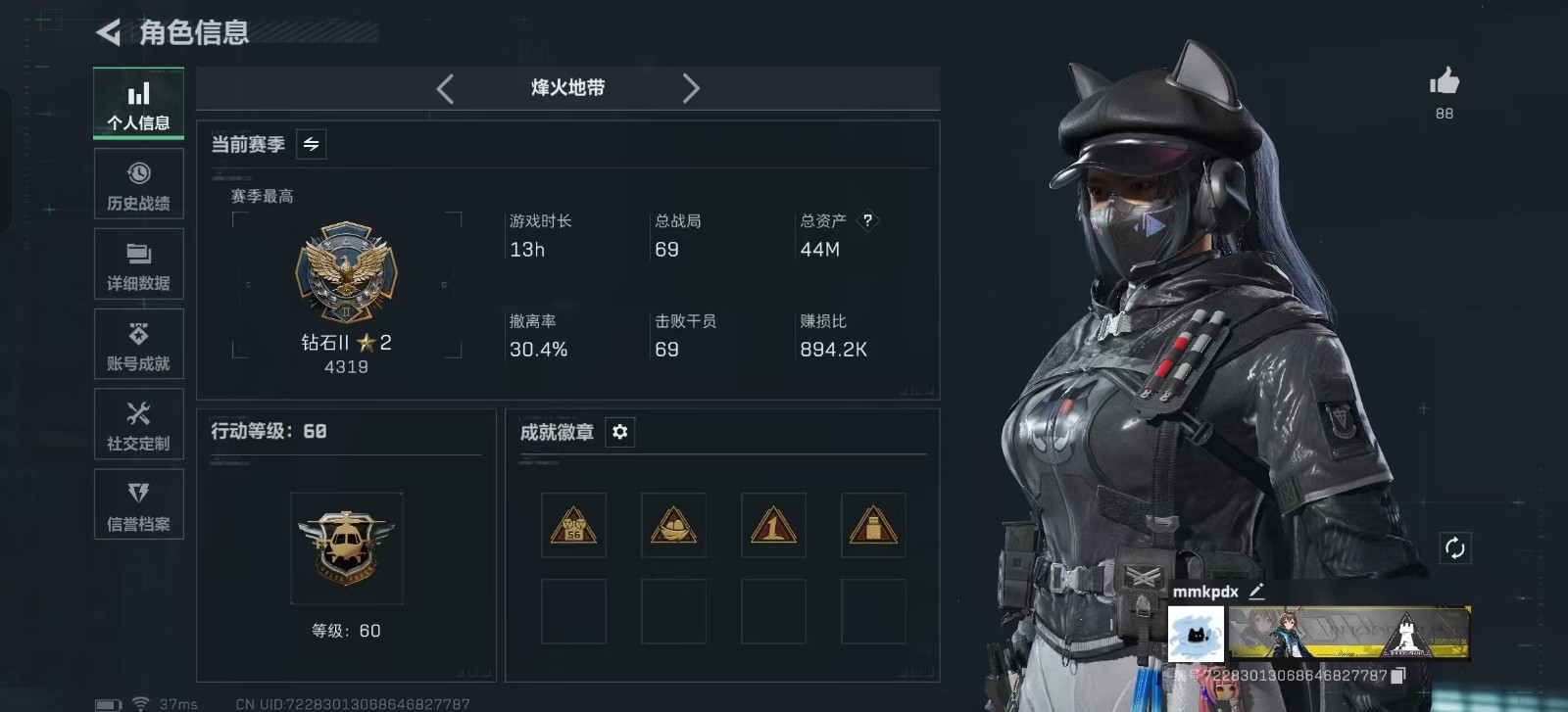 - 烽火地带段位: 钻石