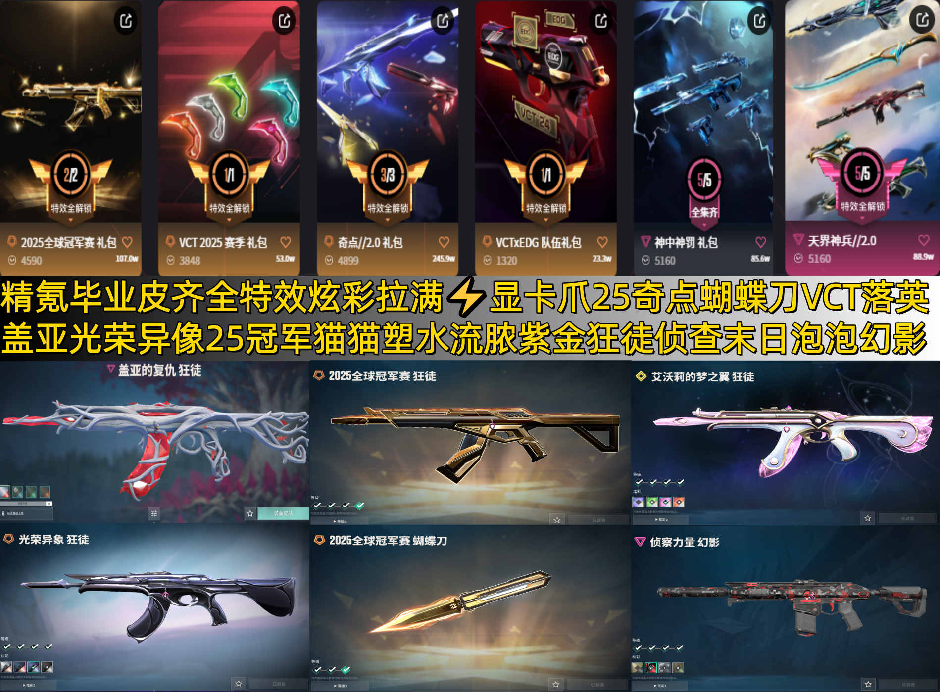 【当前段位:黄金I】精氪毕业皮齐全特效炫彩拉满⚡显卡爪VCT25落英奇点蝴蝶刀⚡盖亚猫猫紫金塑水光荣异像狂徒侦查泡泡幻影