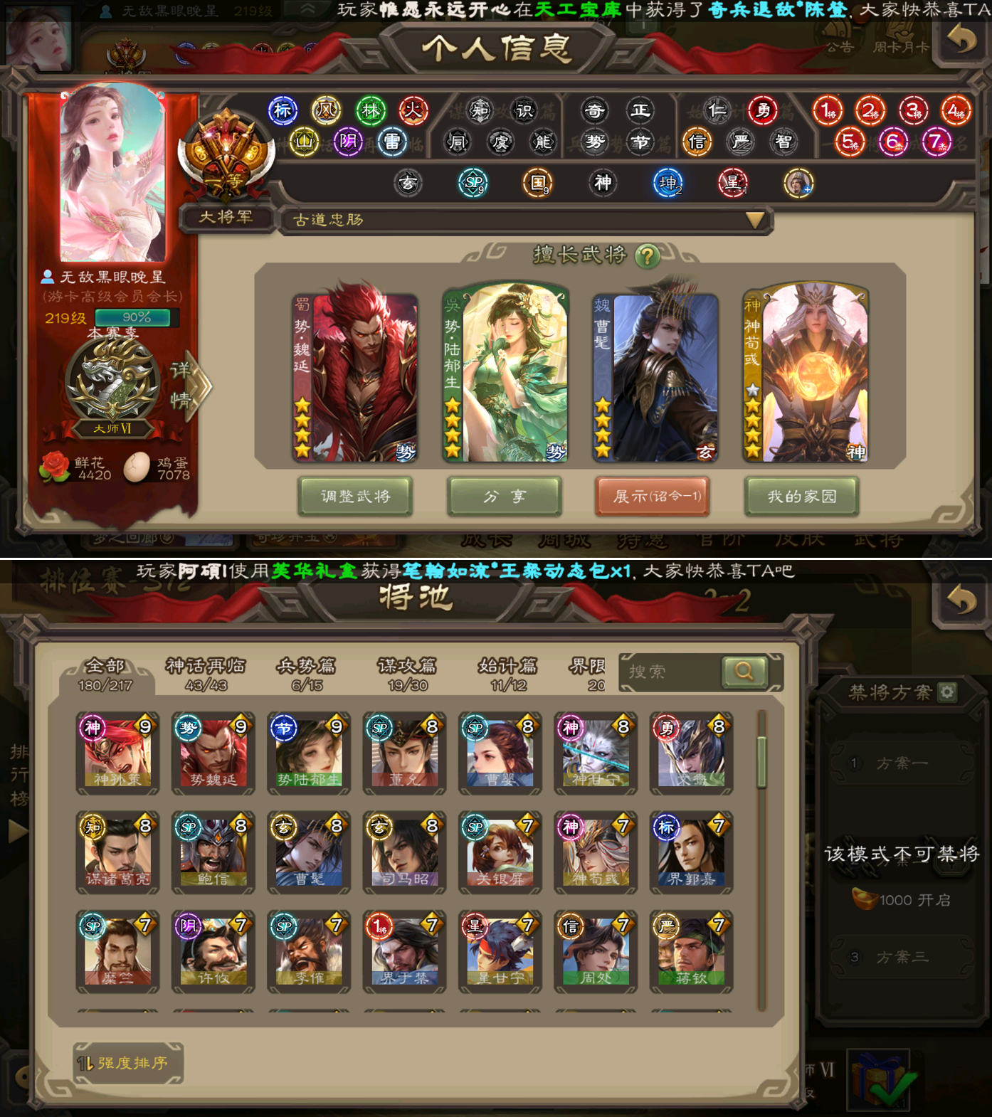 【全平台】 【锦鲤有卡】 95史诗180排位势魏延势陆郁生曹髦神郭嘉神荀彧回廊文鸯谋黄忠神甘宁神孙策