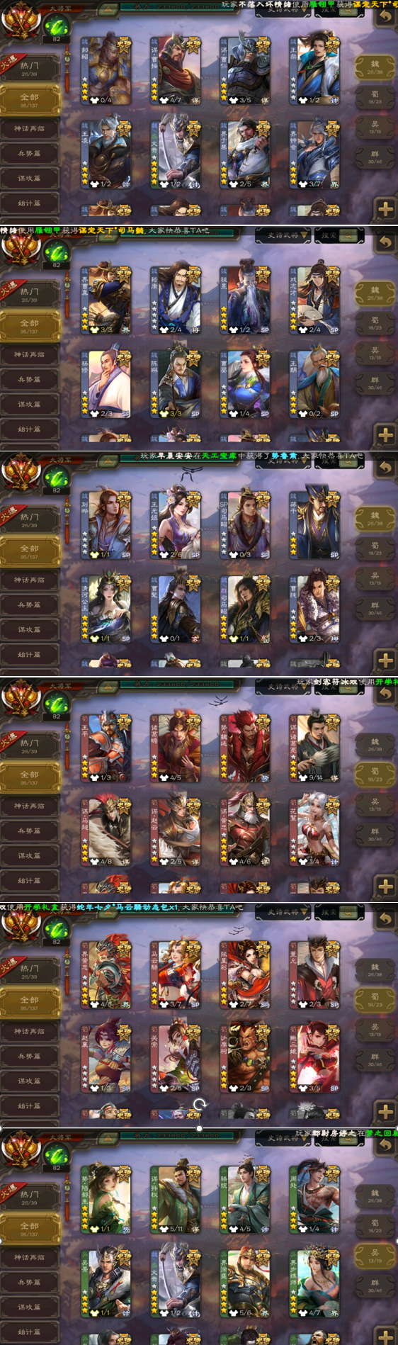 友徐庶、友庞统、蔡文姬、伏完、刘协、界袁术、SP赵云、SP貂蝉、张宝、界华雄、伏皇后、李儒、界于吉、界张角、华雄、袁术、界华佗、界吕布、公孙瓒、蔡夫人、公孙渊、郭图逢纪、张鲁、蹋顿、严白虎、SP黄月英、董白、刘虞、曹节、蔡邕、界貂蝉、sp太史慈、张梁、卢植、刘琦、李傕、郭汜、界庞德、界颜良文丑、界袁绍、张济、樊稠、界董卓、刘繇、张绣、界蔡文姬、界高顺、董承、界刘表、星张辽、星徐晃、星张郃、界公孙瓒、丁原、胡车儿、韩遂、界伏皇后、荀谌、孔融、羊祜、高览、马元义、朱僬、阎圃、界蔡夫人、谋刘赪、马日磾、王、谋陈宫、谋卢植、谋华雄、谋袁绍、谋高顺、阎象、鲍信、陈珪、木鹿大王、杨奉、谋贾诩、何进、张任、李傕郭汜、孟达
