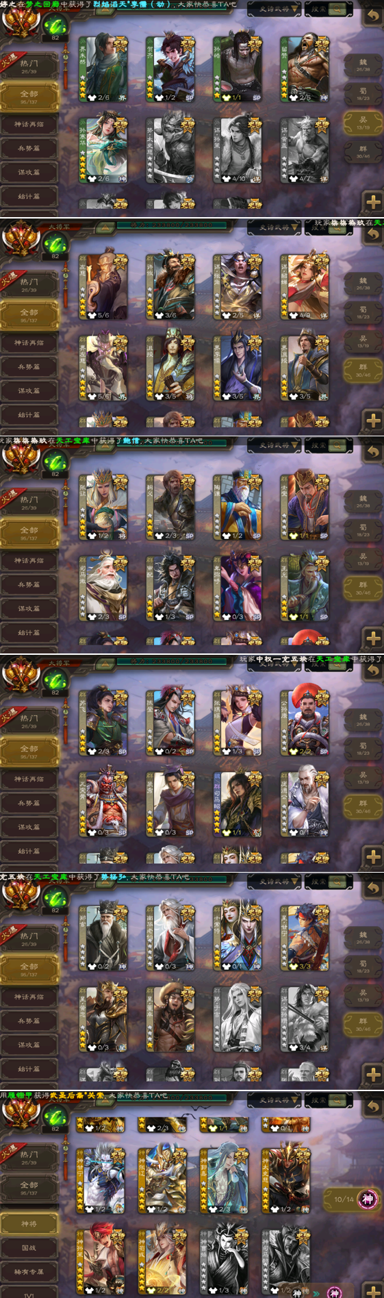 神荀彧、神郭嘉、神甘宁、神孙策、神太史慈、神赵云、神吕布、神陆逊、神张辽、神刘备