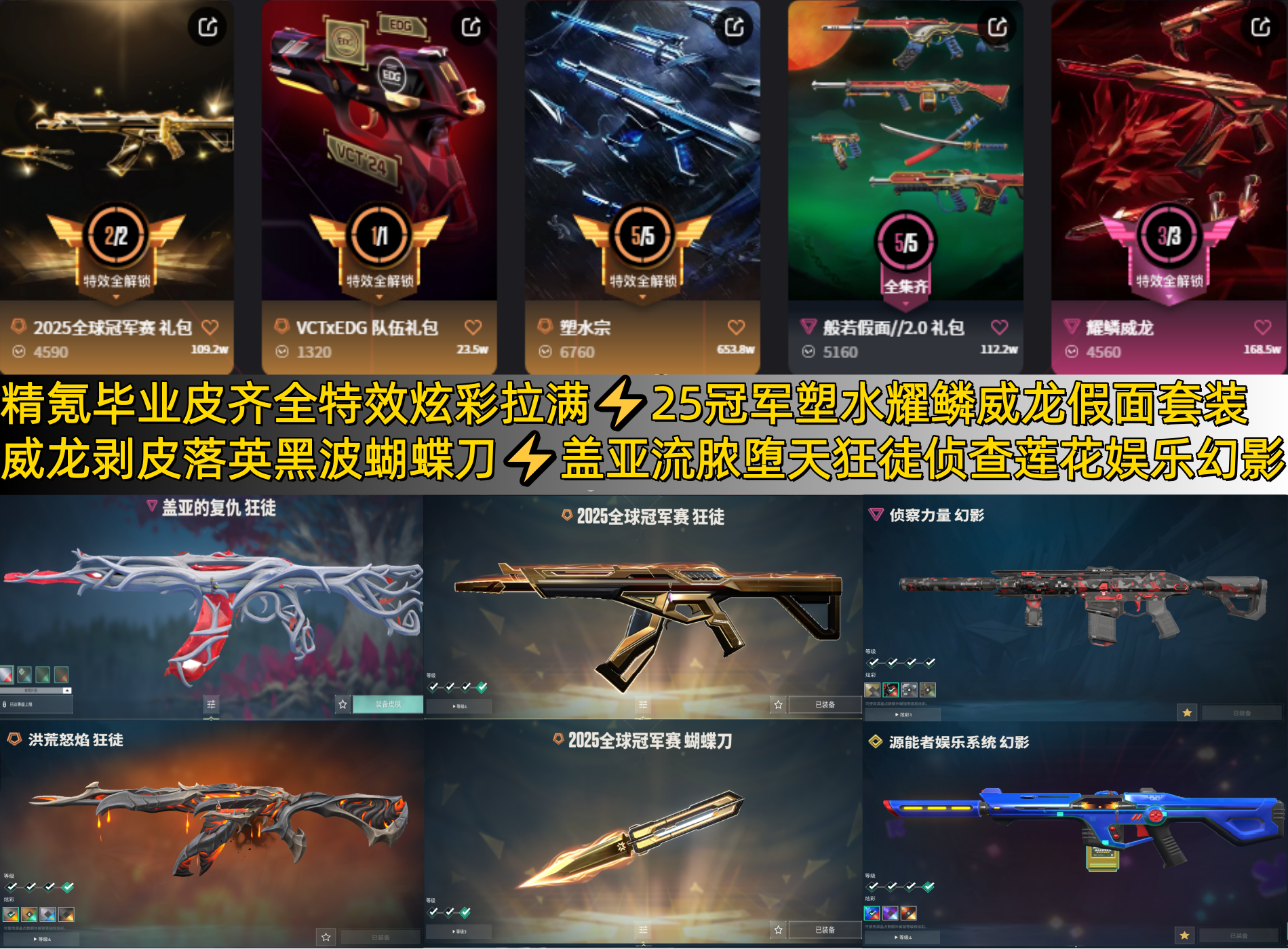 【当前段位:黄金I】精氪毕业皮齐全特效炫彩拉满⚡威龙刃剥皮落英黑波蝴蝶刀⚡25冠军盖亚流脓塑水堕天狂徒⚡娱乐莲花侦查幻影