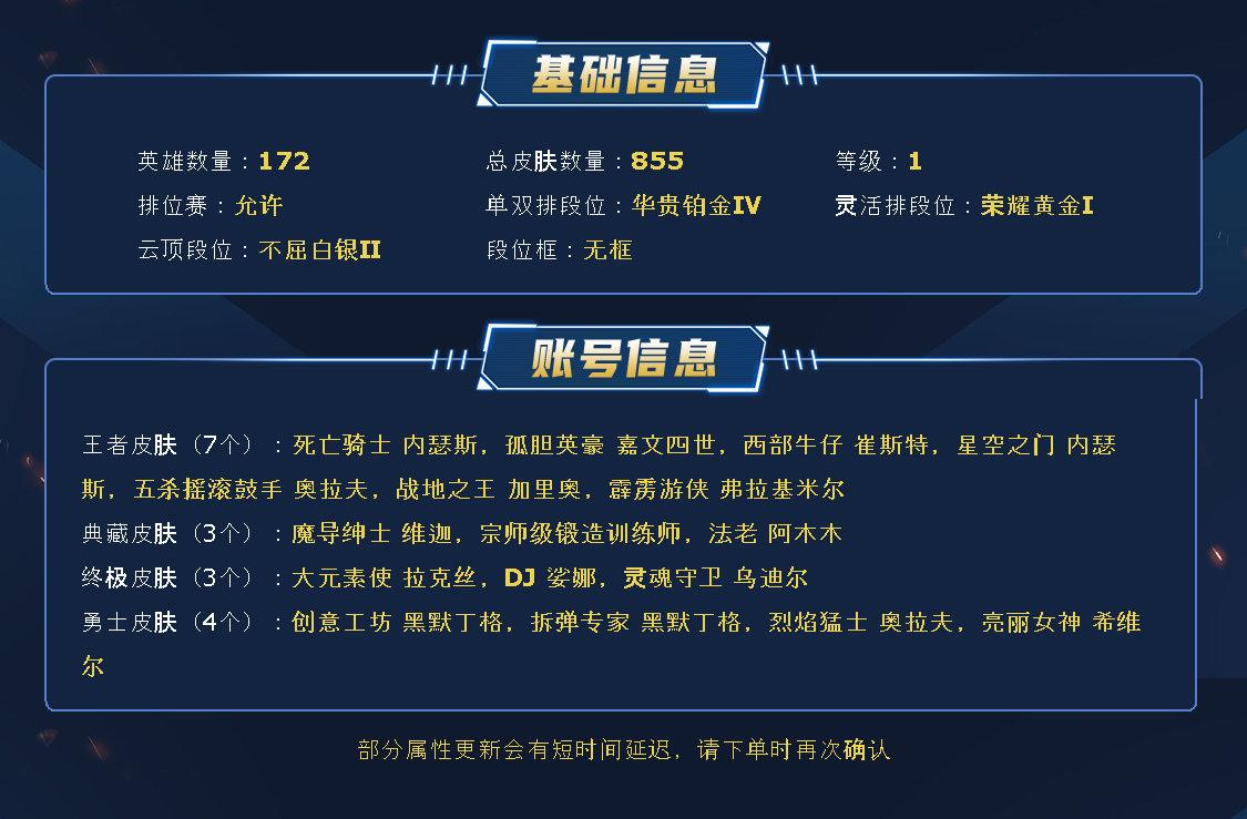 如遇账号登录不上,请多登录几次直到进游戏,或者呼叫客服。客服24小时配合上号!⭐店铺每天都会更新各种优质账号⭐喜欢可收藏、方便下次租用。祝亲游戏愉快!!!