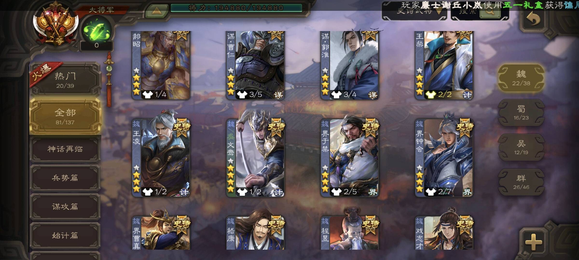81/史诗武将数量