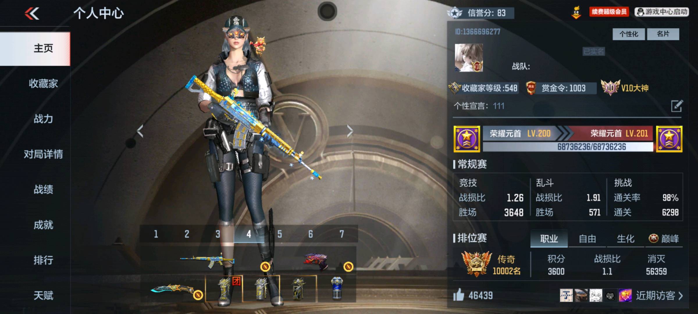 - 自由排位段位: 枪王
