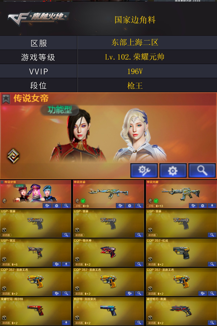 【商品标题】:东部上海二区-196V-可二次实名-【Lv.102.荣耀元帅】-【段位:枪王】